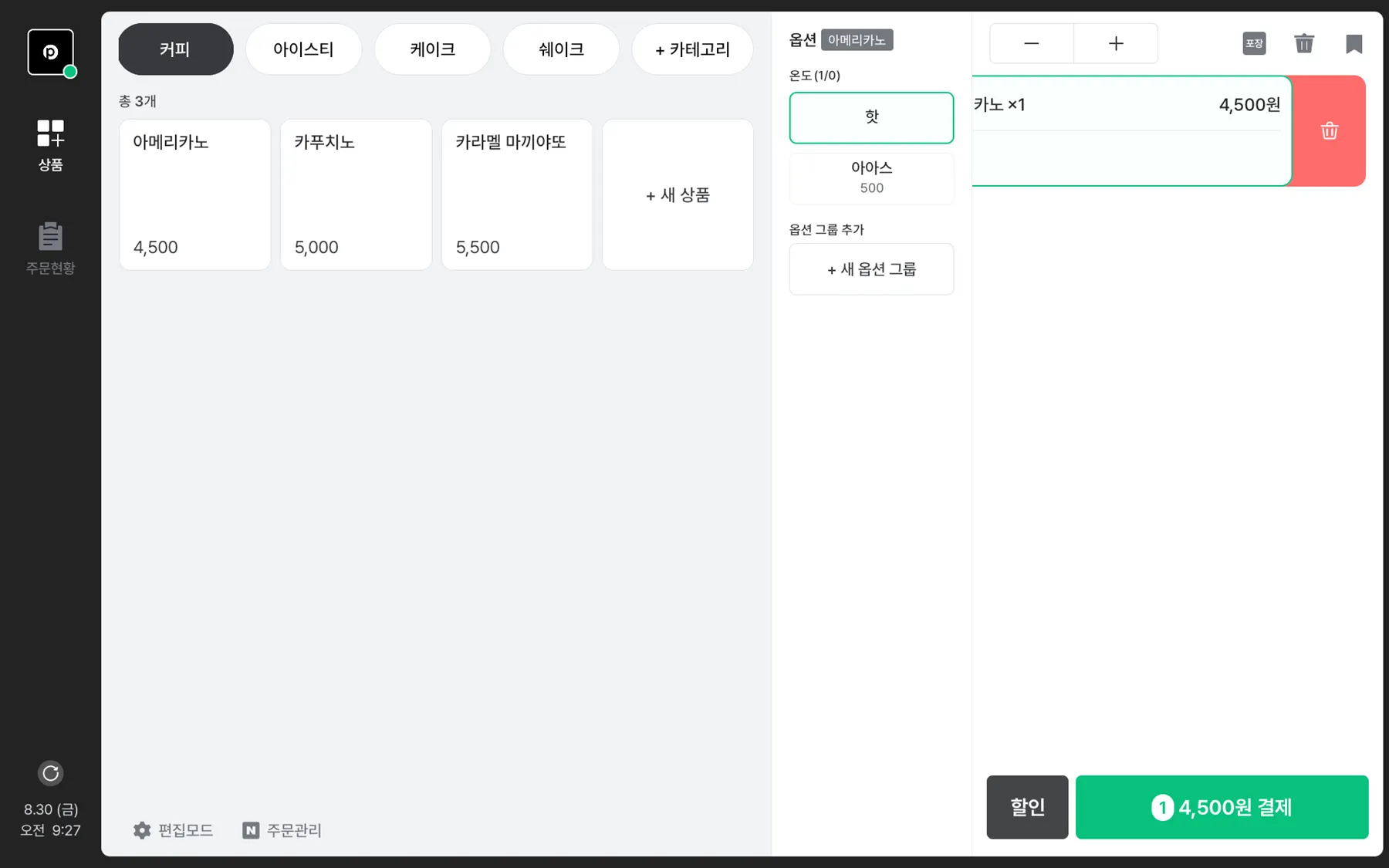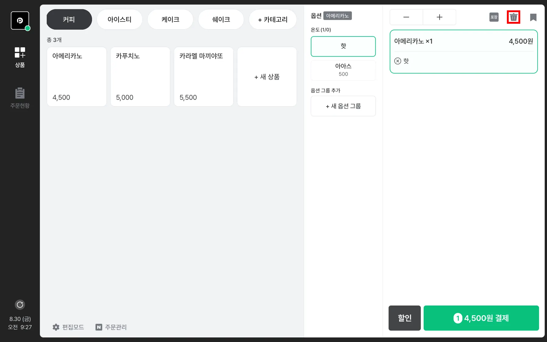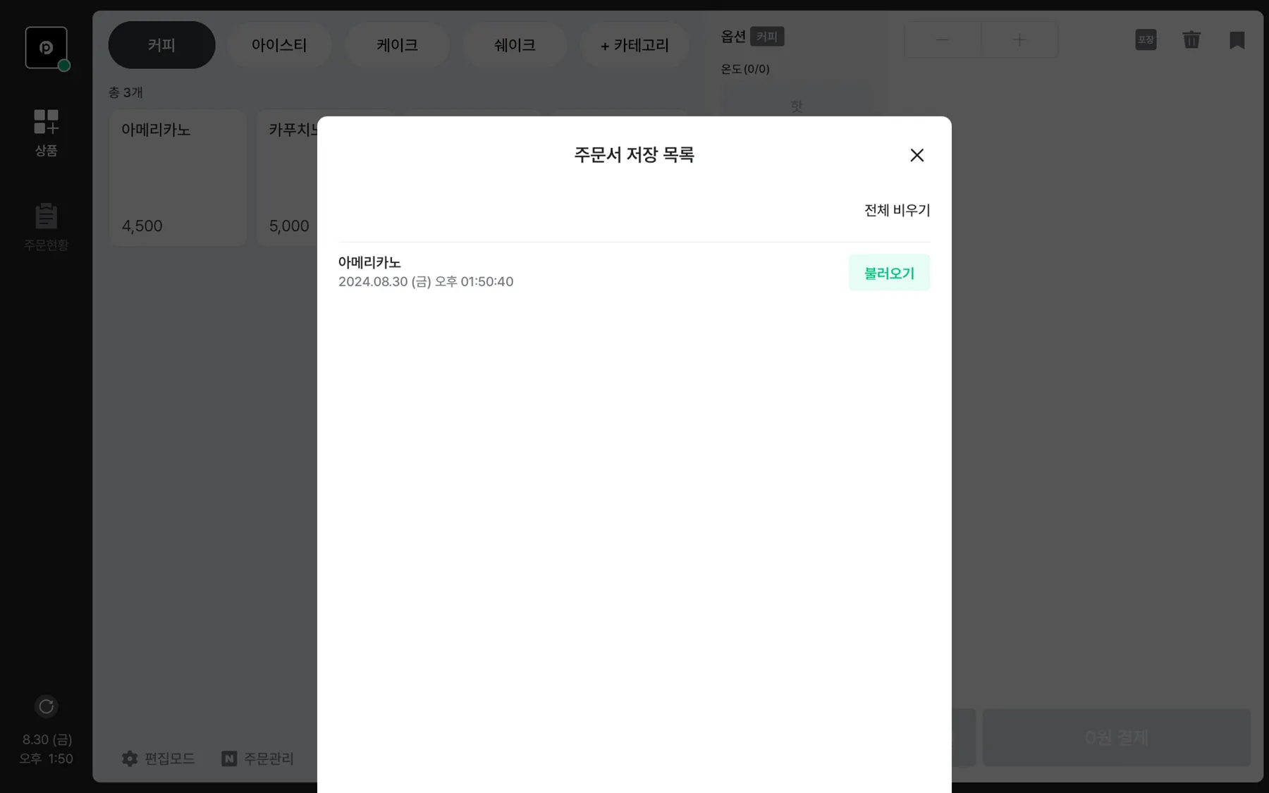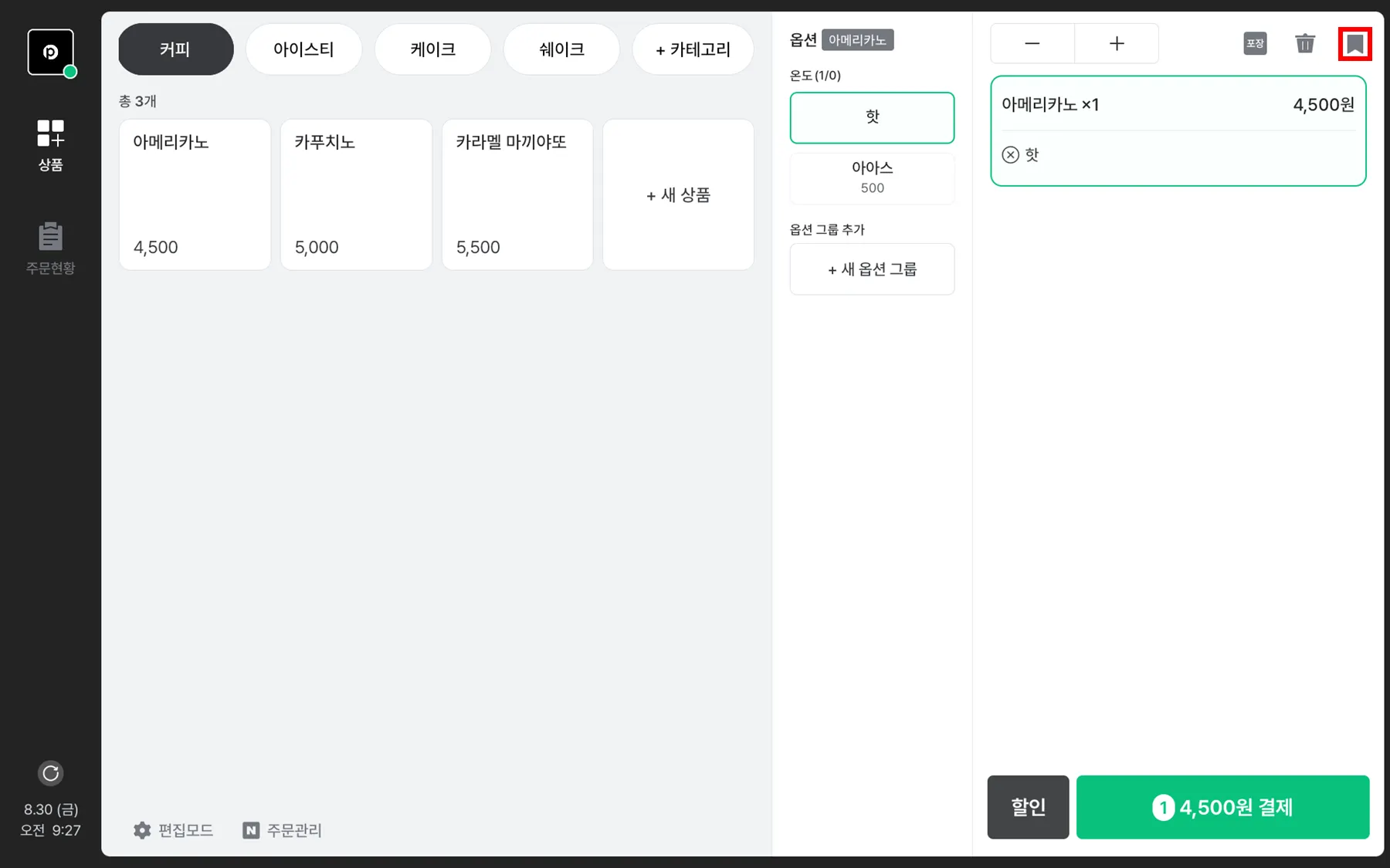 저장 아이콘을 선택 하여 상품목록을 대기시킬 수 있어요.