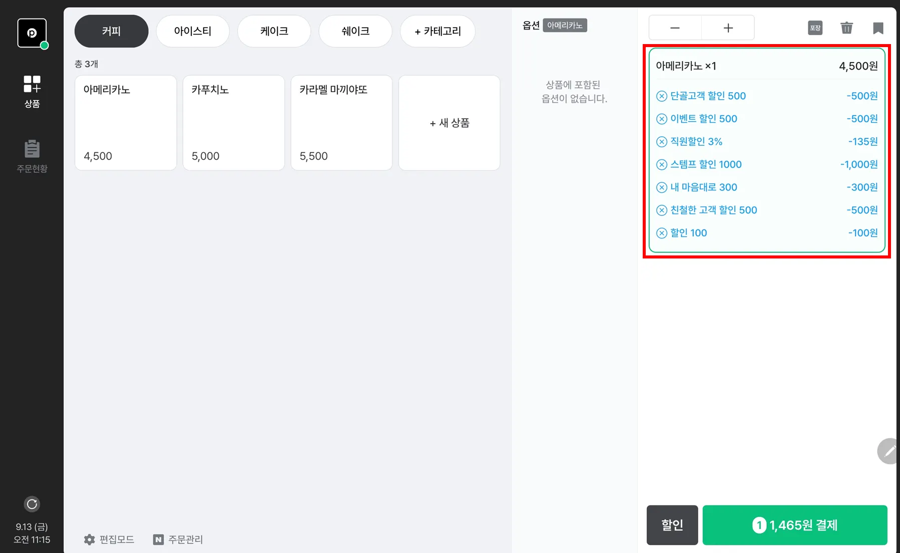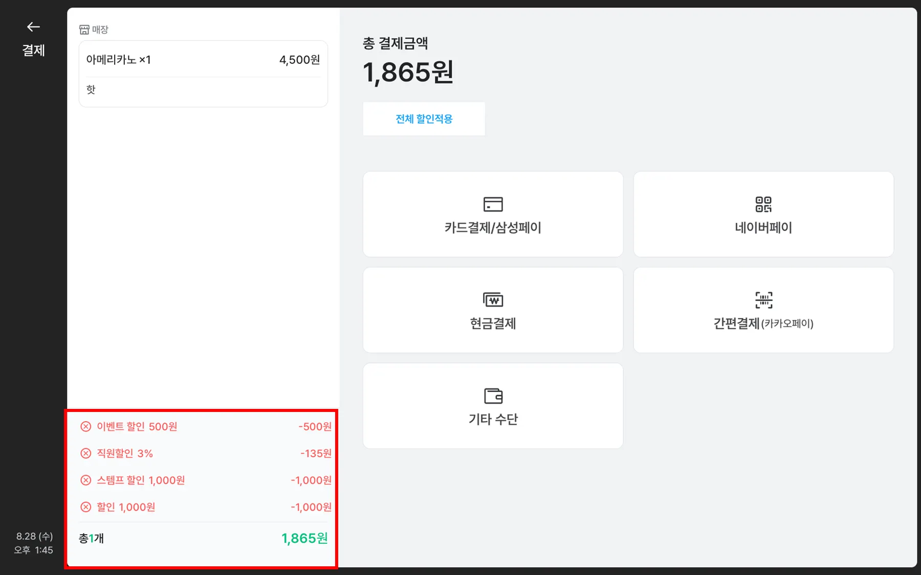 결제 중 할인