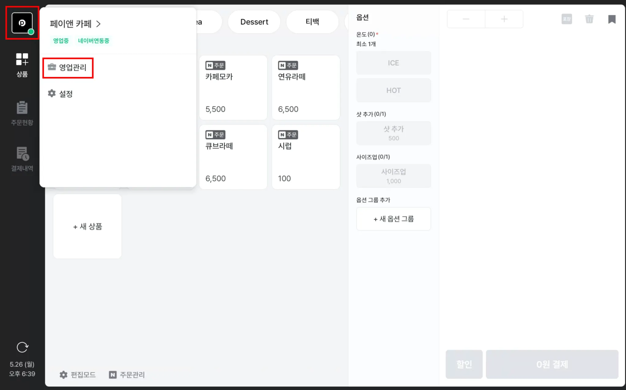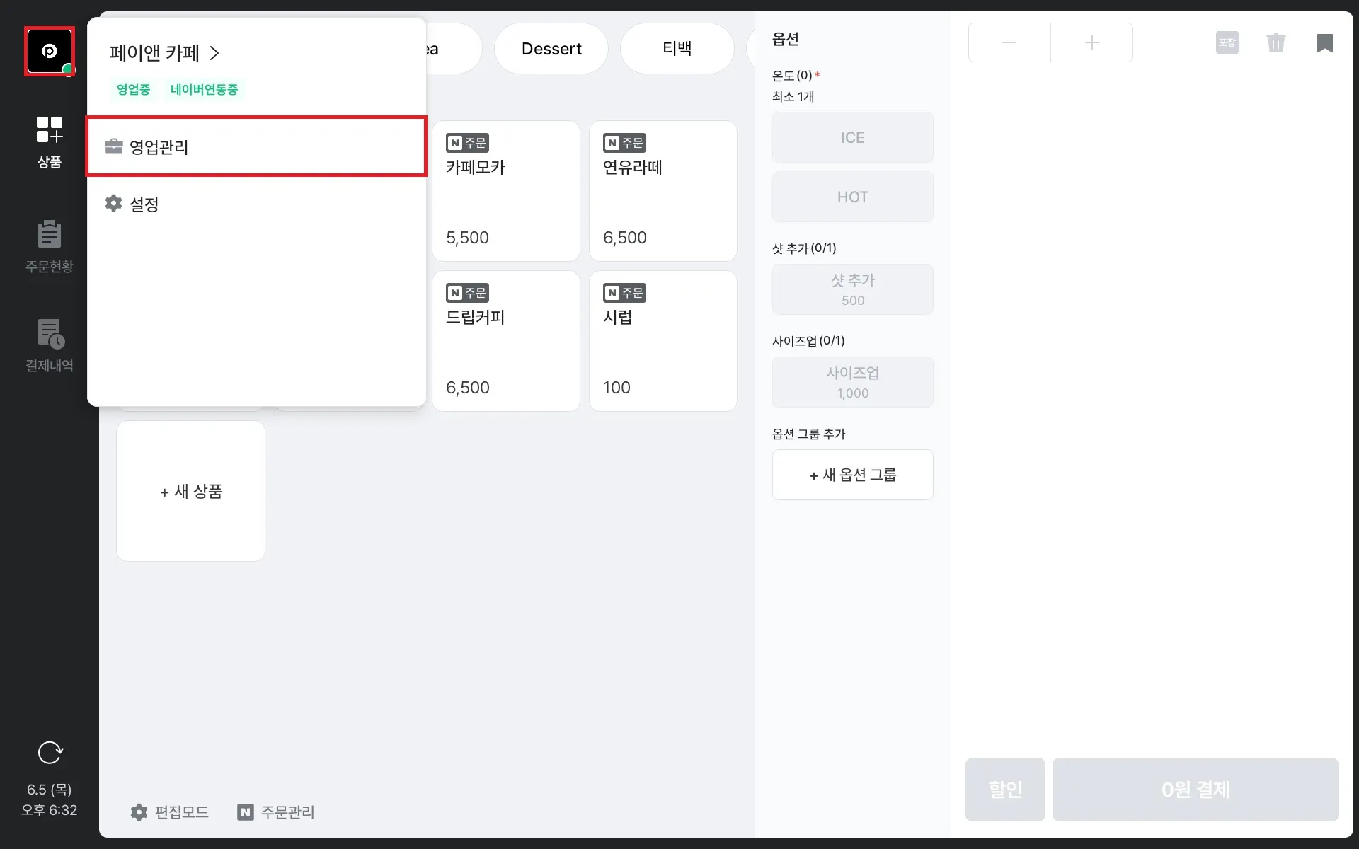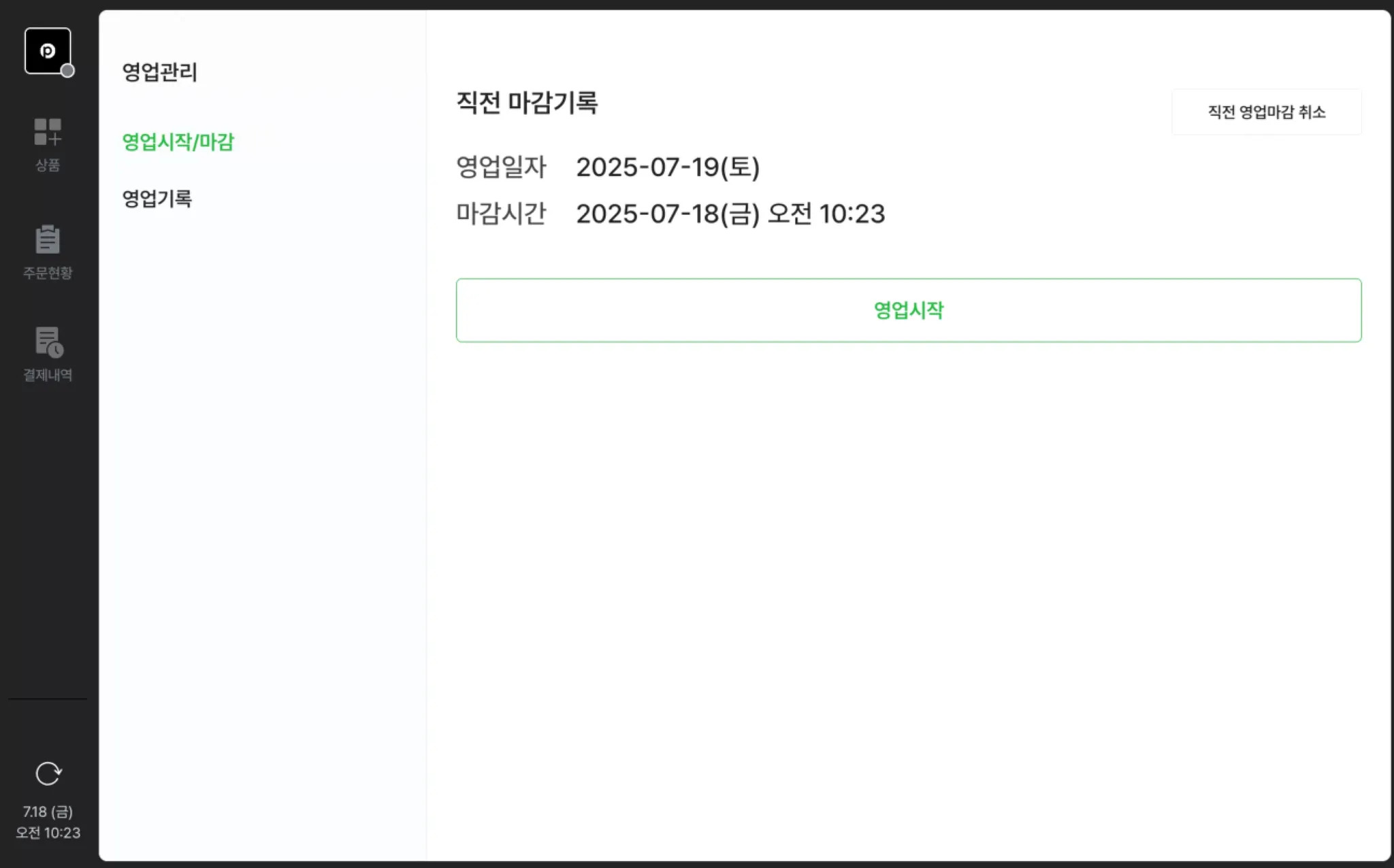 영업 시작하기 버튼을 누르면 영업이 시작됩니다.