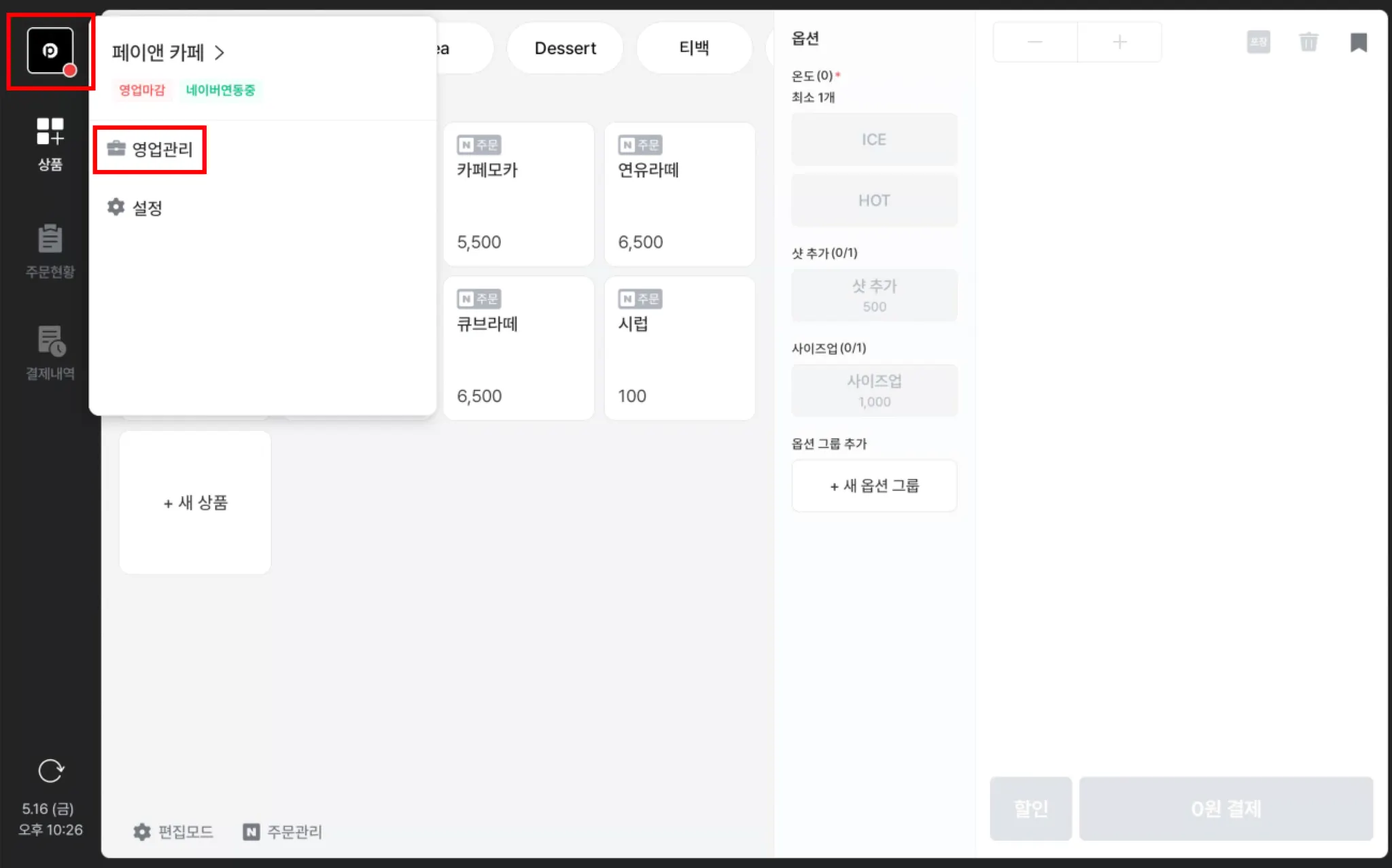 영업 마감 시, 영업 마감 버튼을 선택해 주세요.