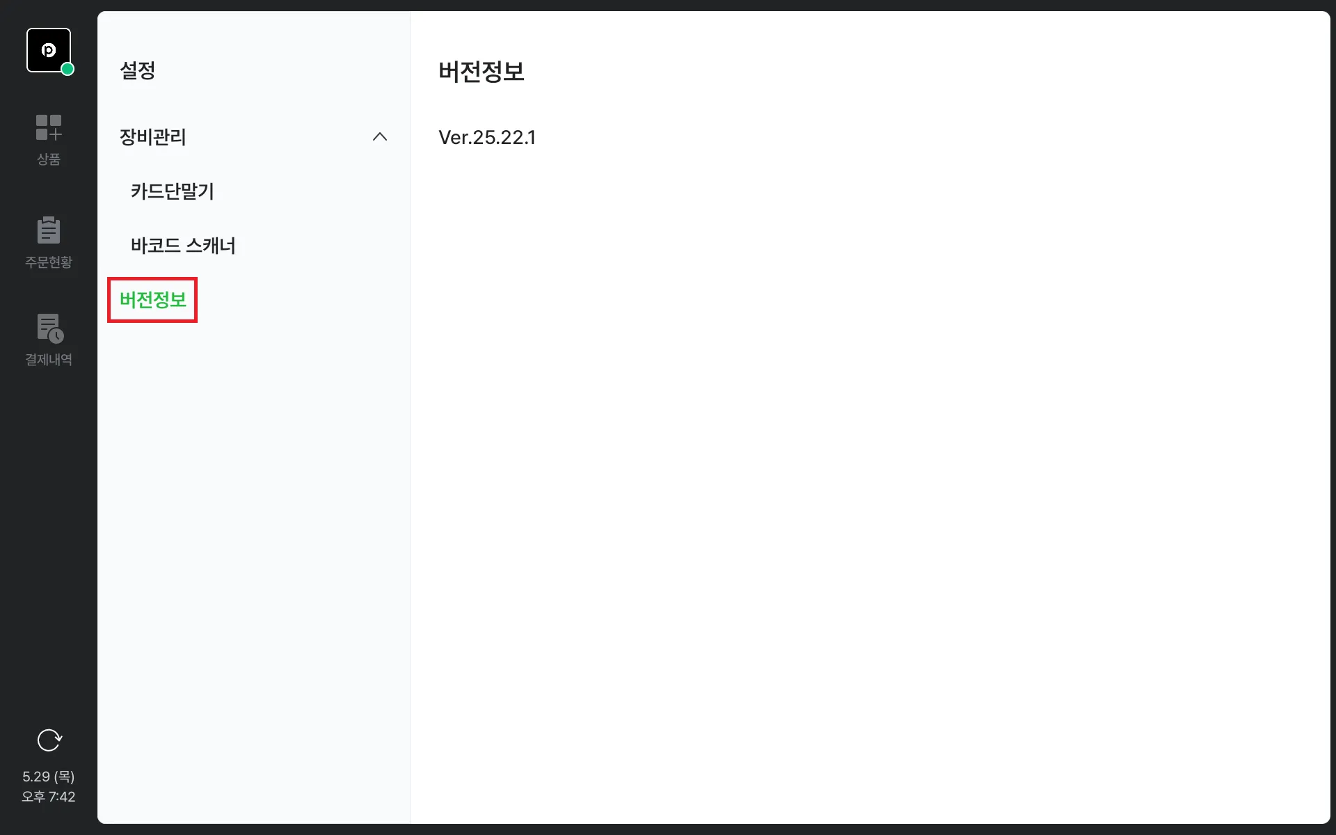 버전정보를 클릭하면, 포스의 버전정보를 확인할 수 있어요.