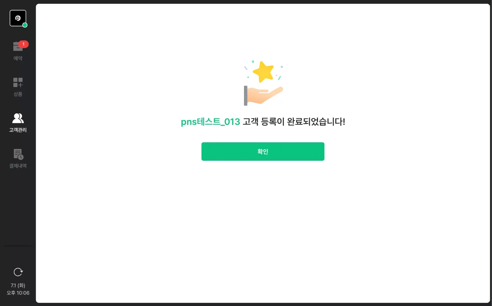 고객 등록이 완료되었어요.