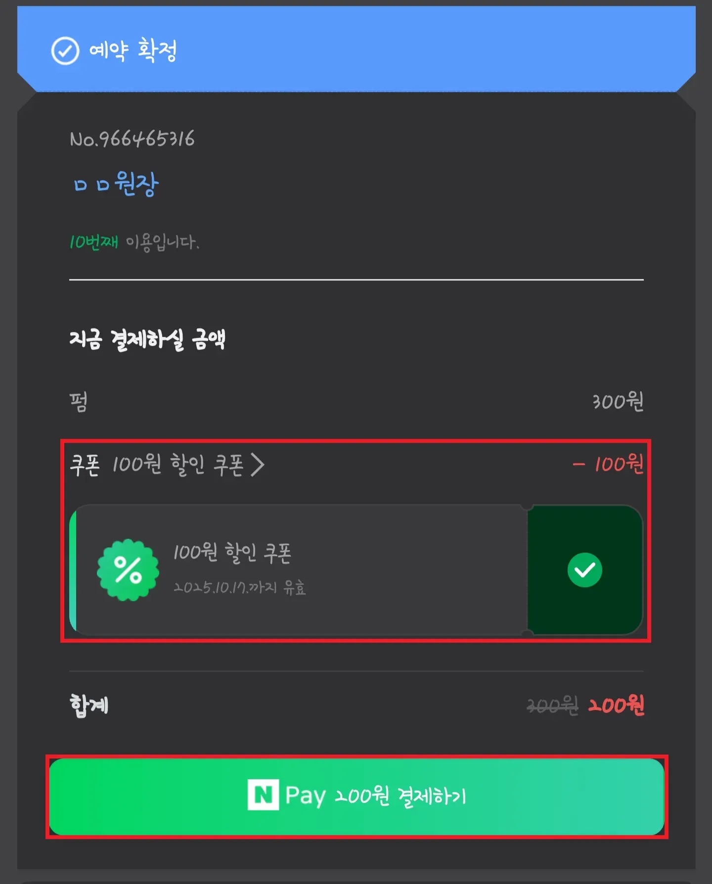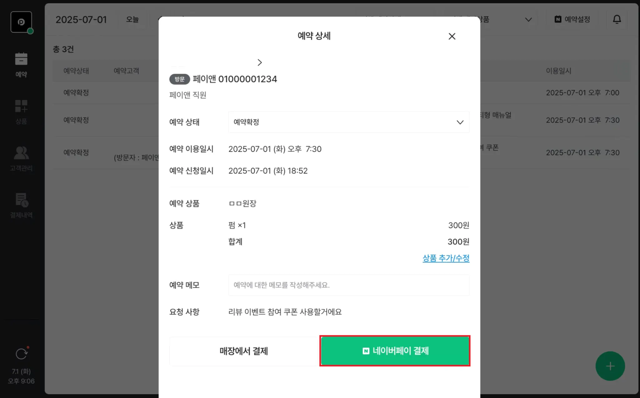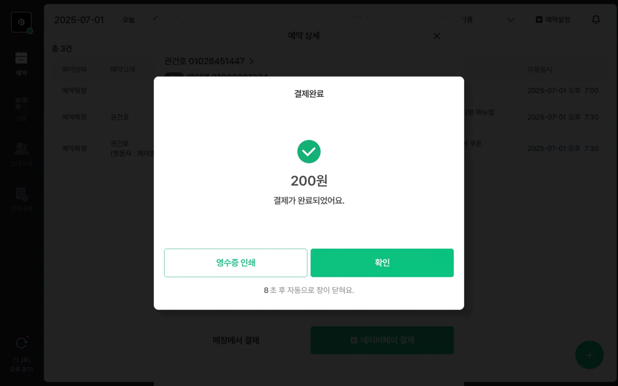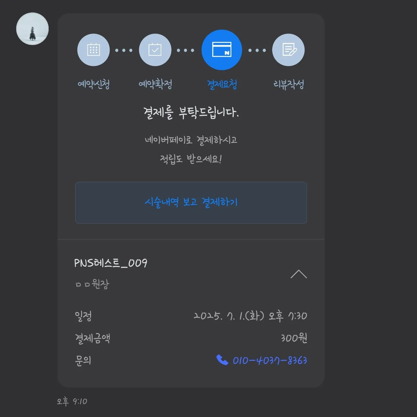 네이버 앱(또는 네이버 톡톡)을 통해 결제할 수 있어요.