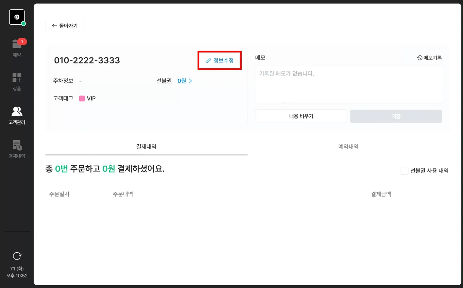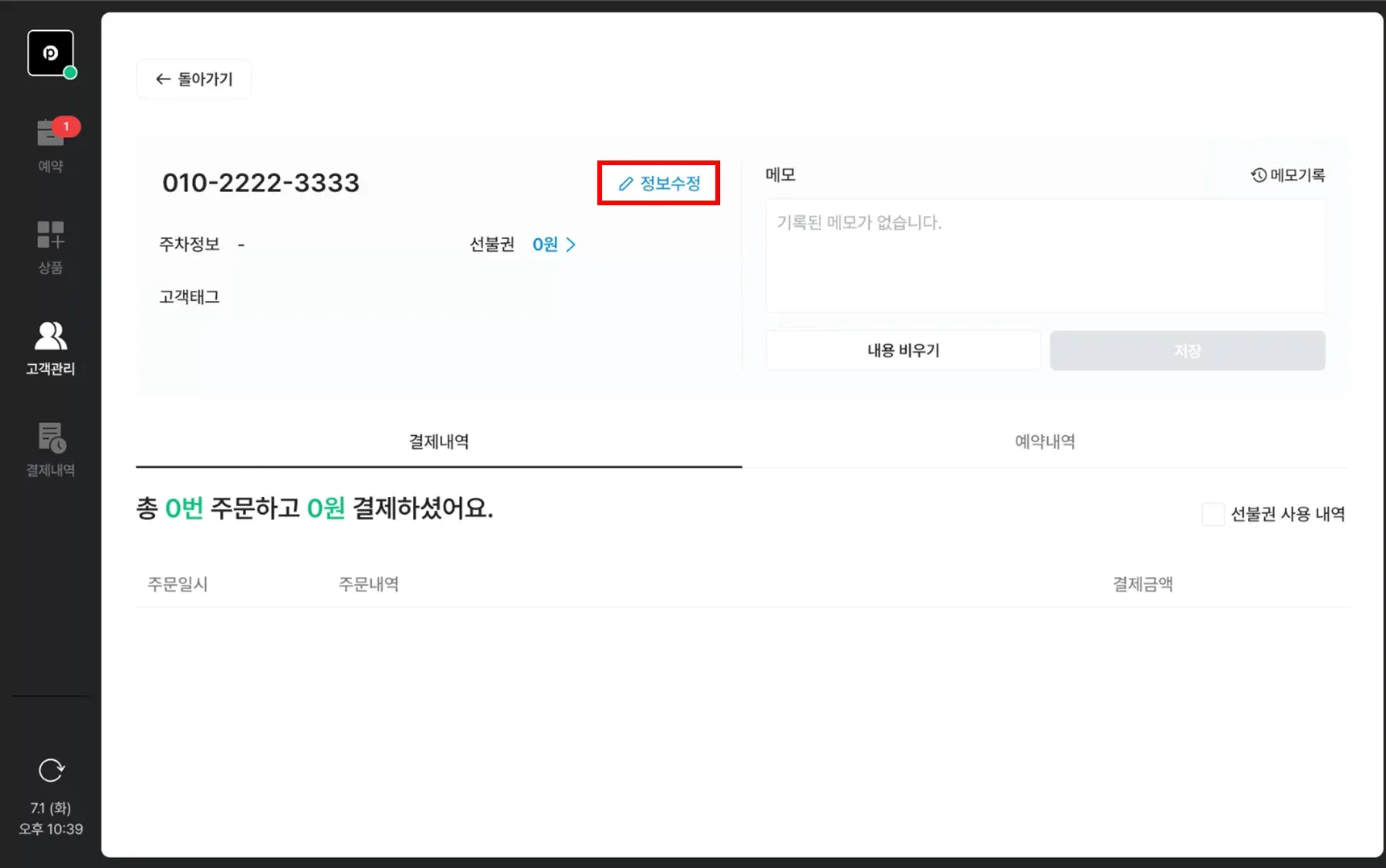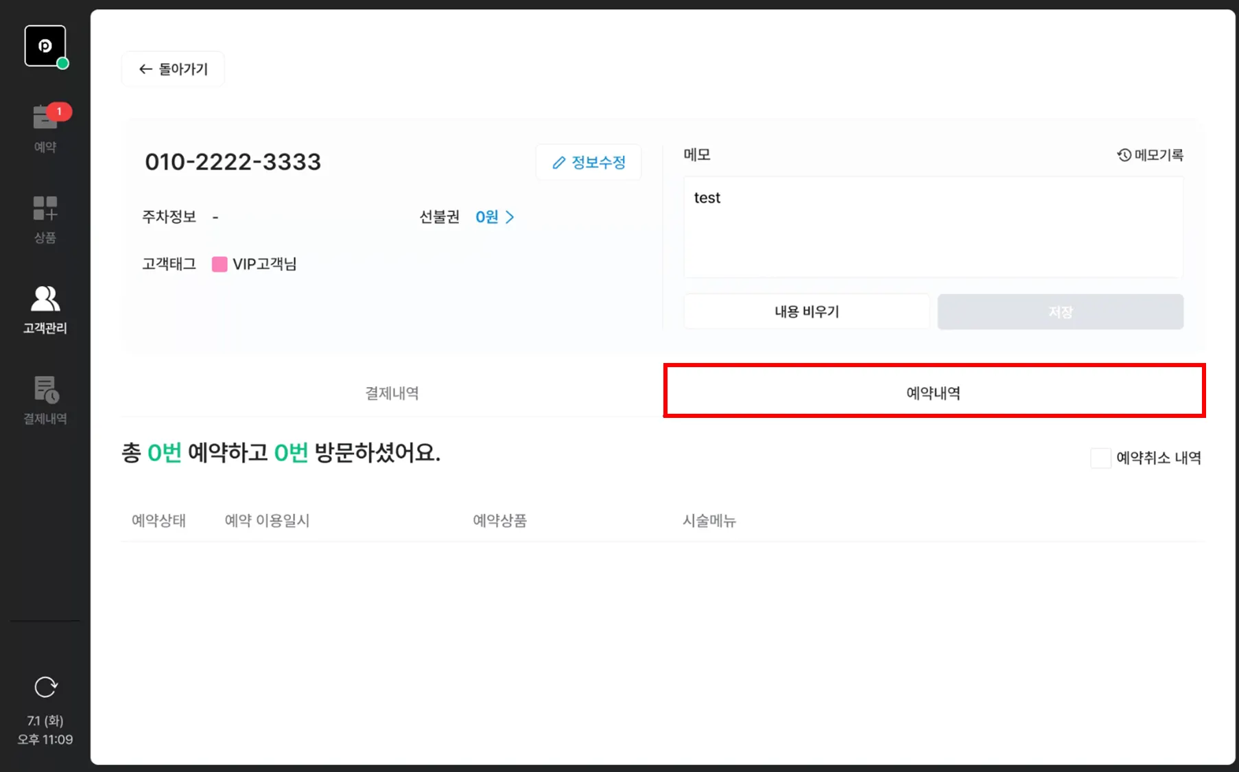 메모기록을 클릭하면 히스토리 확인이 가능해요.