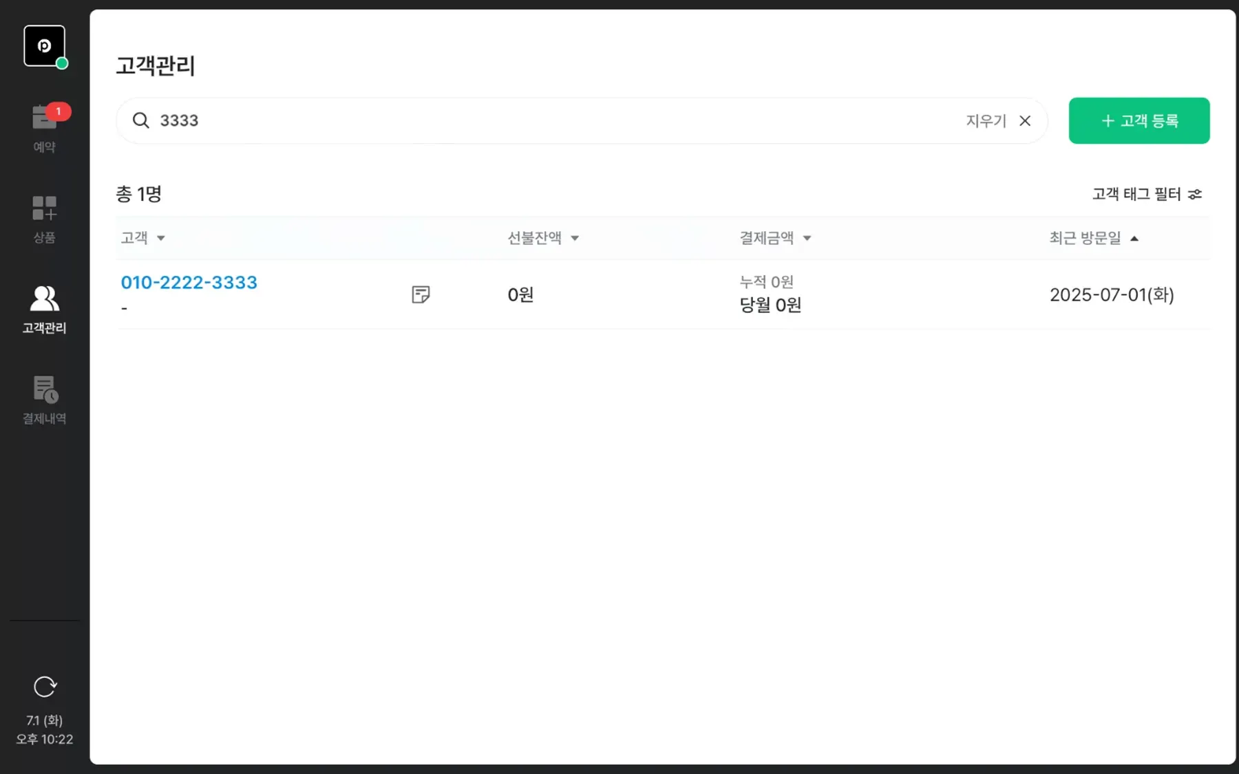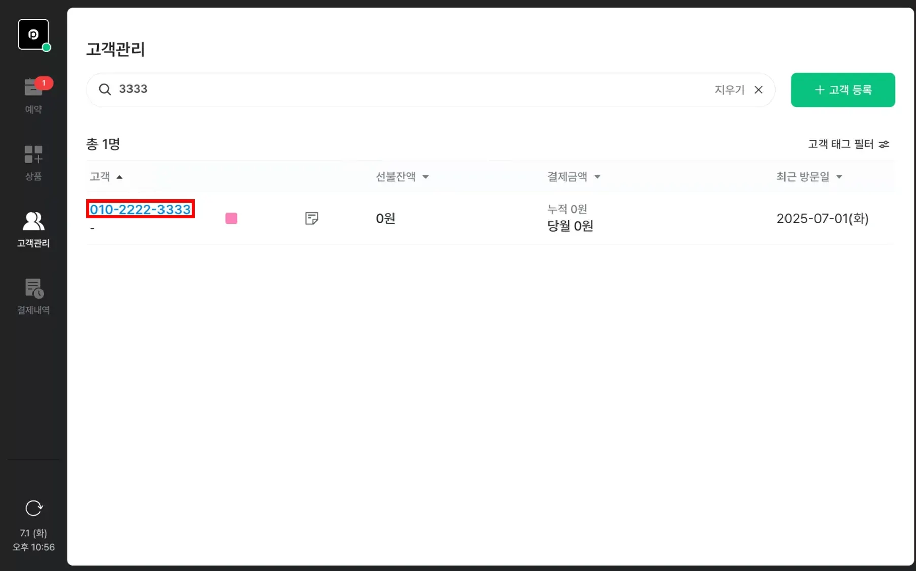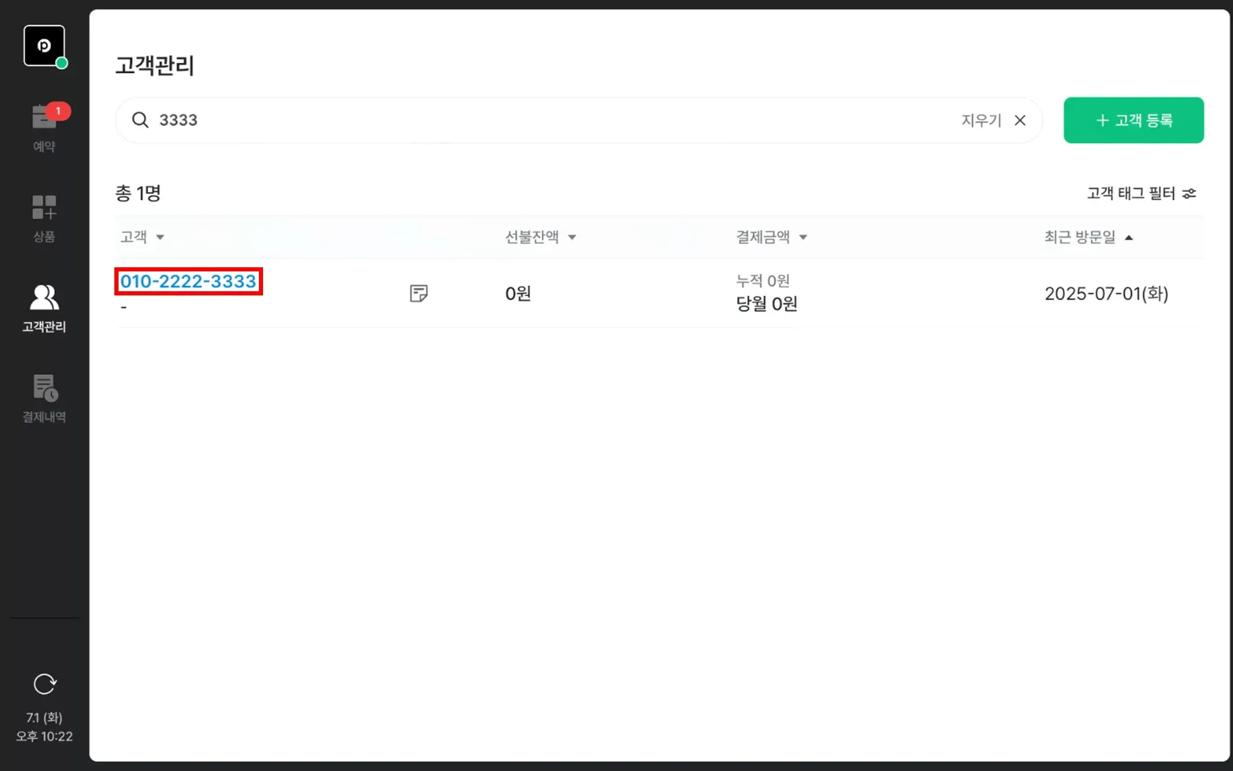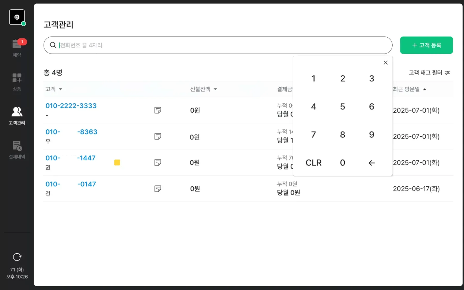 고객 확인을 위해 검색창에 고객의 전화번호 끝 4자리를 입력해주세요.