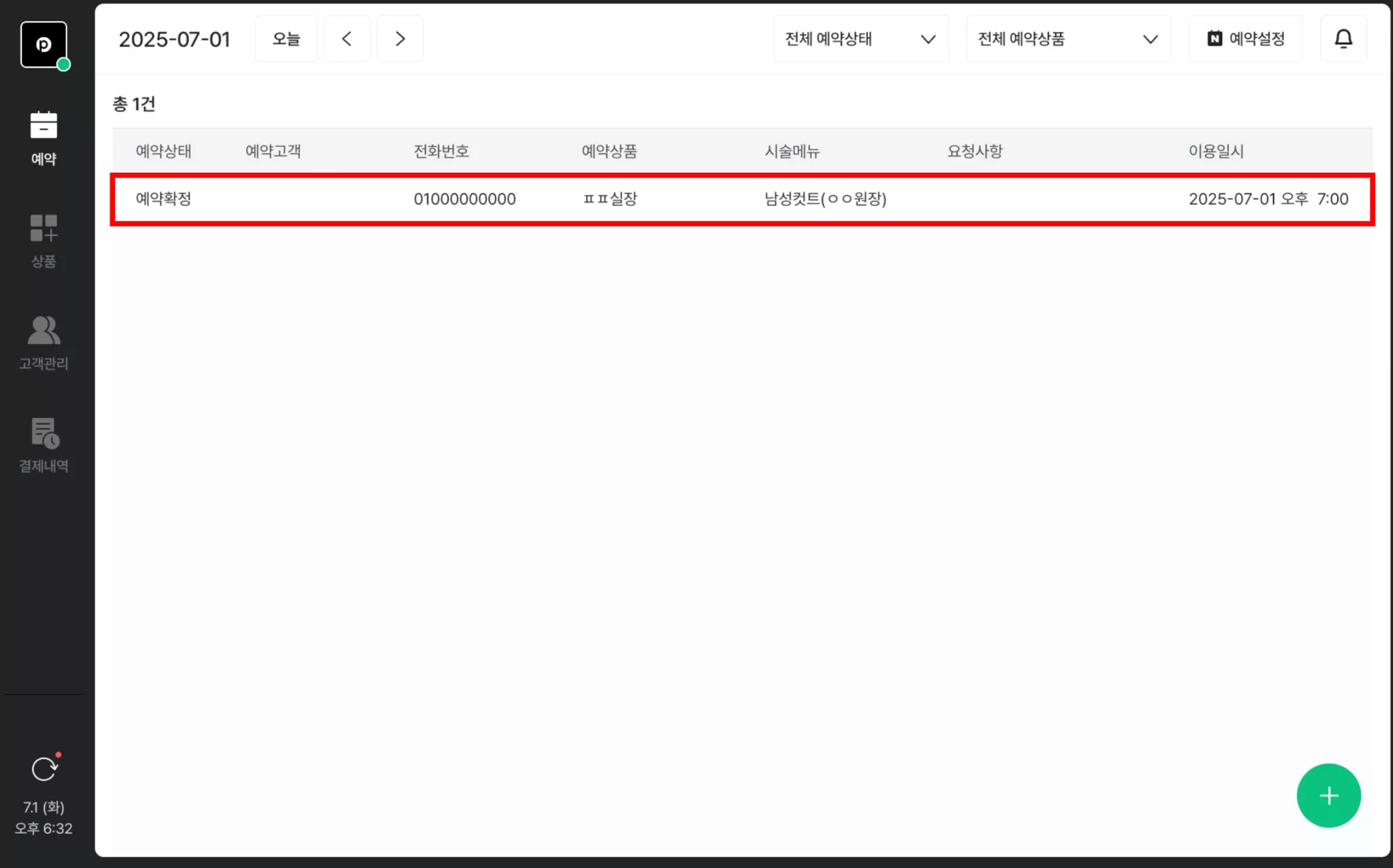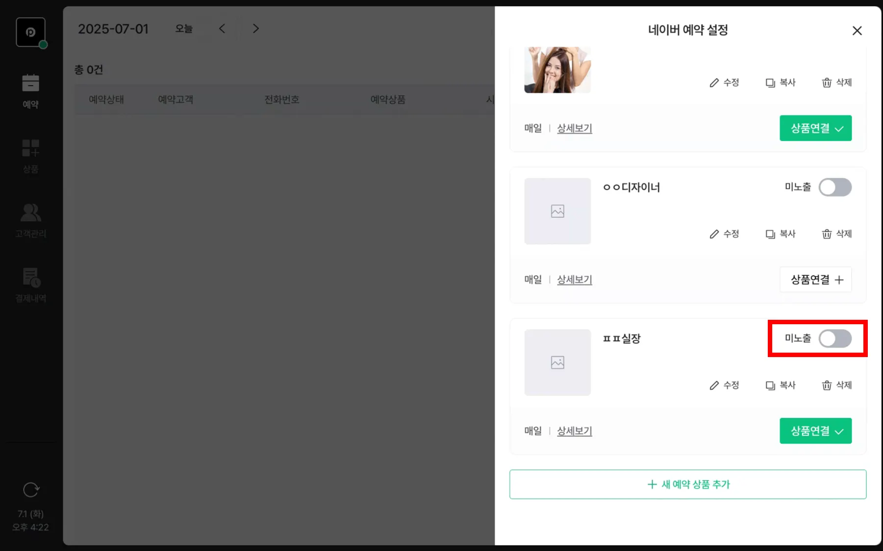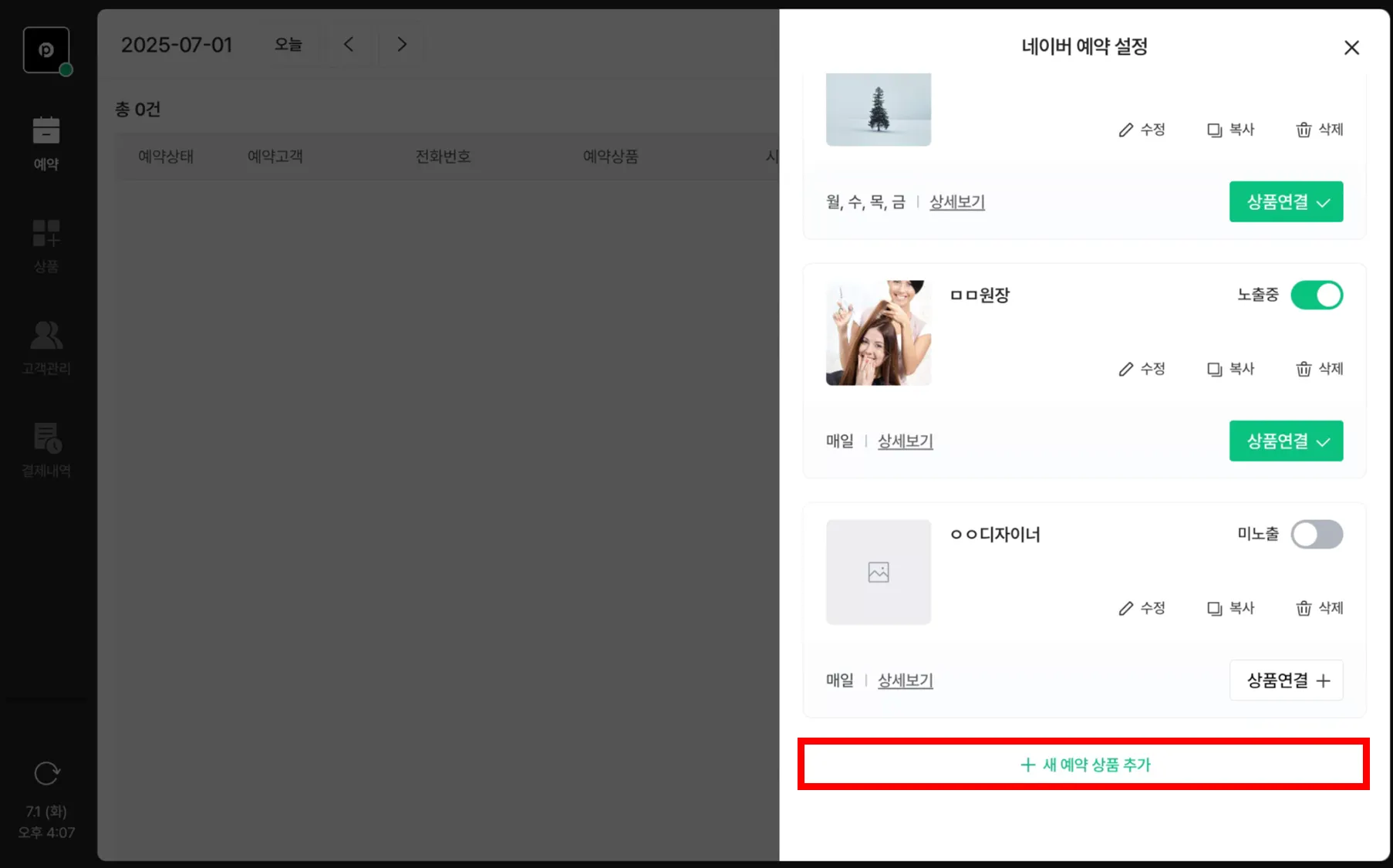 생성된 예약 상품의 상품 연결을 클릭하여 포스 상품을 연결해주세요.