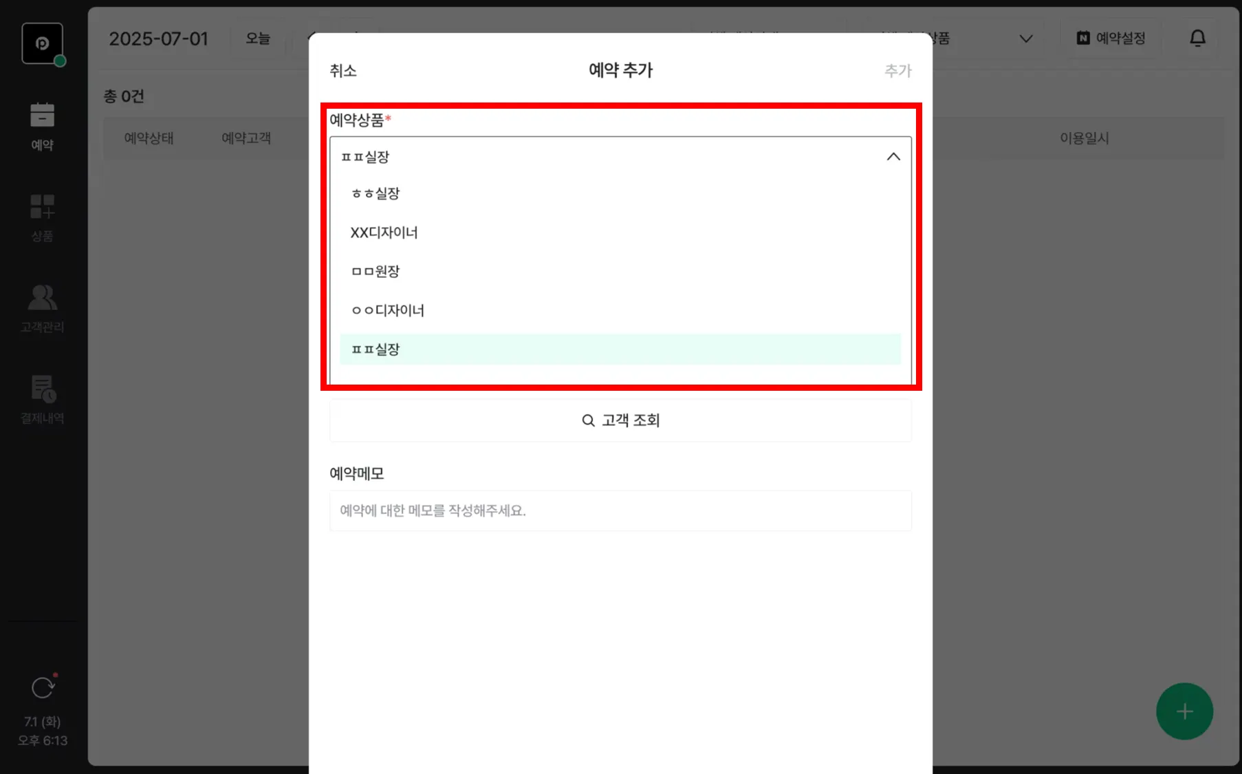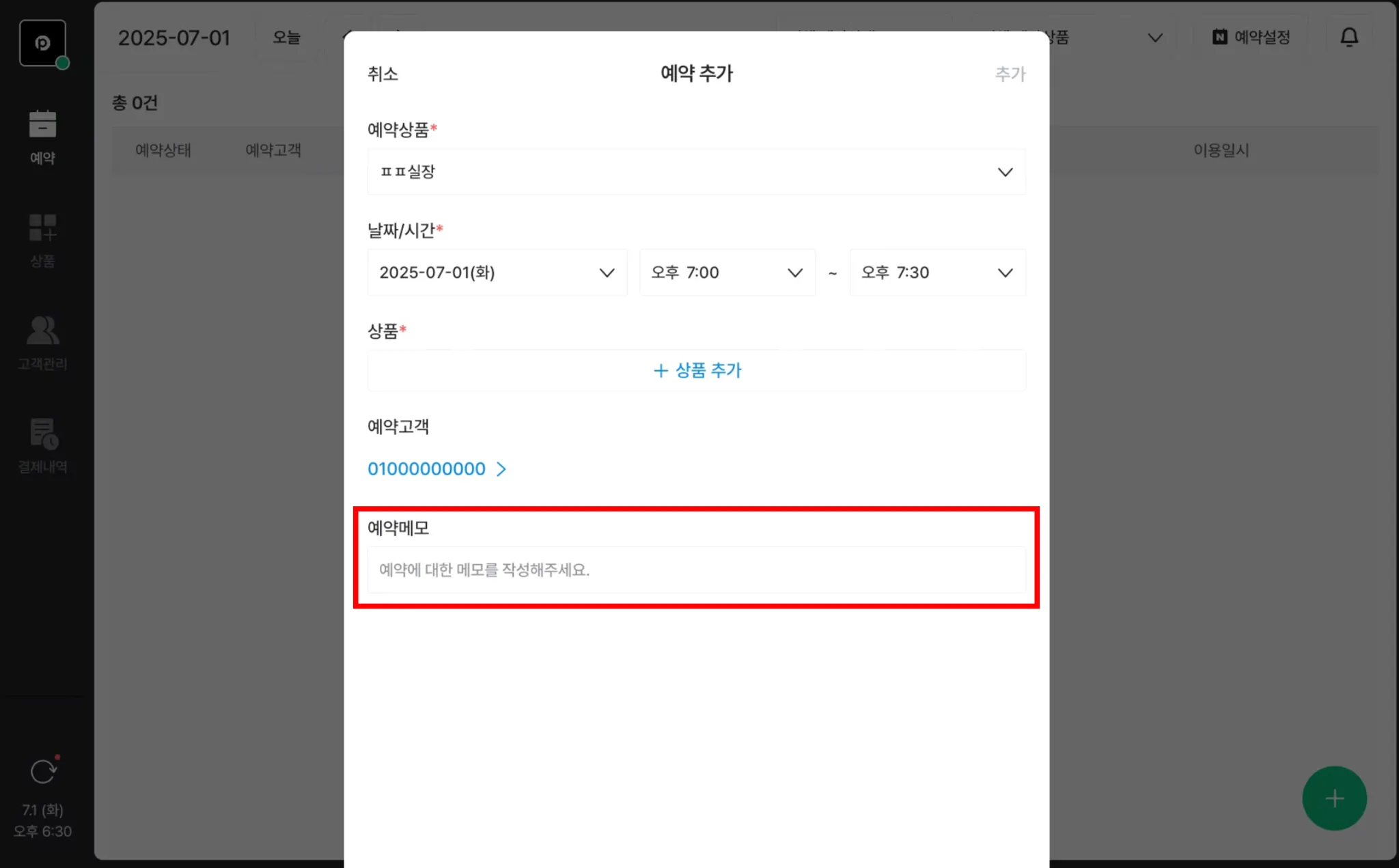 손님이 네이버예약 외 수단으로 예약을 원할 때 예약 건을 생성하는 기능이에요.