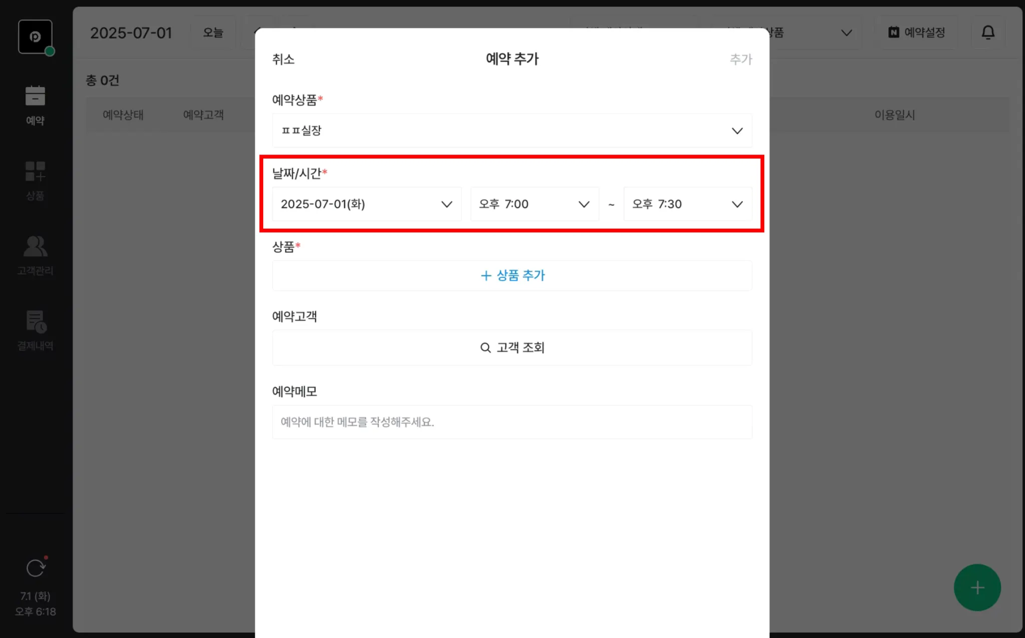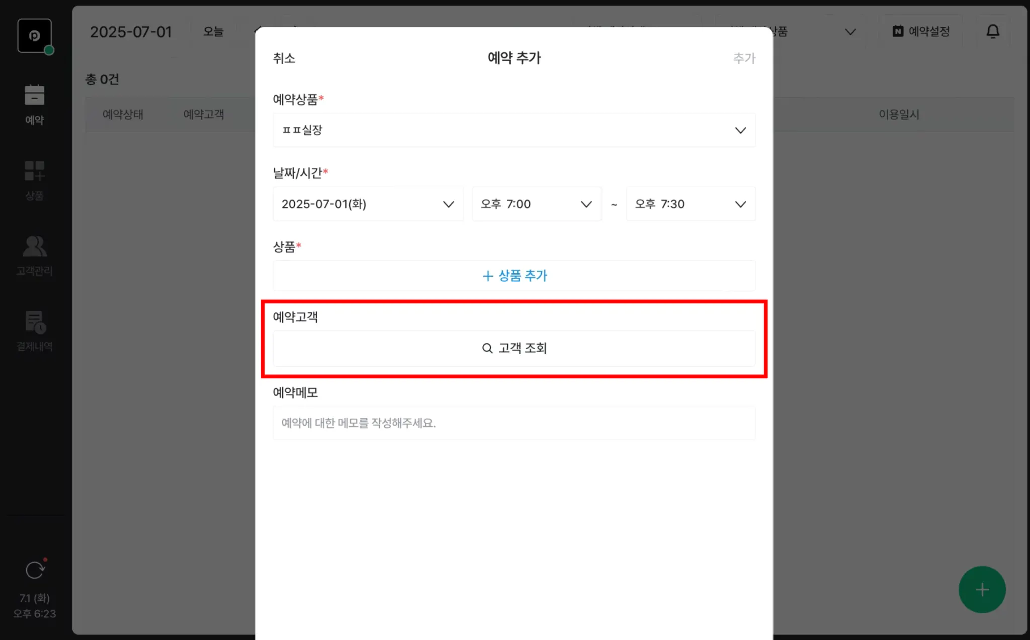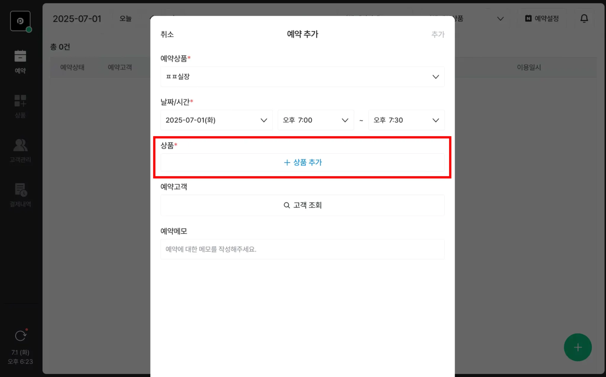 예약 상품 생성을 하기 위해 포스 상품을 먼저 생성해주세요.