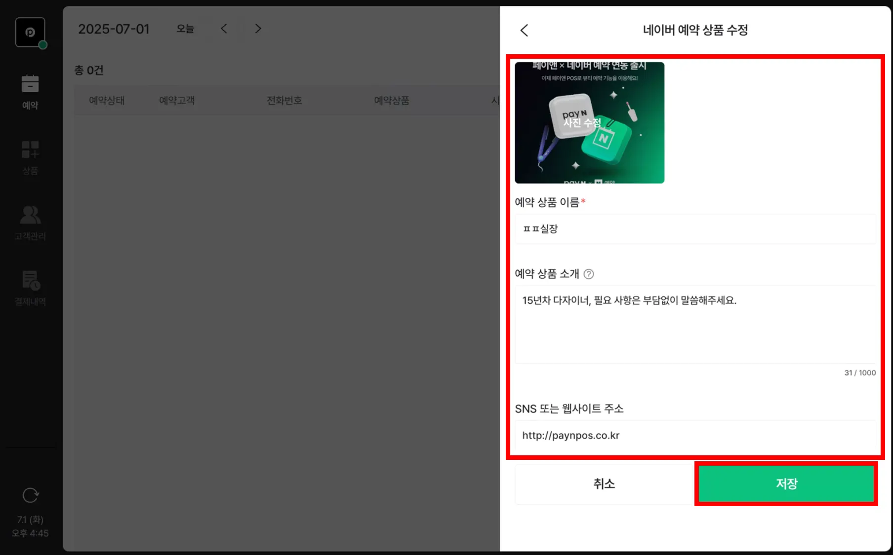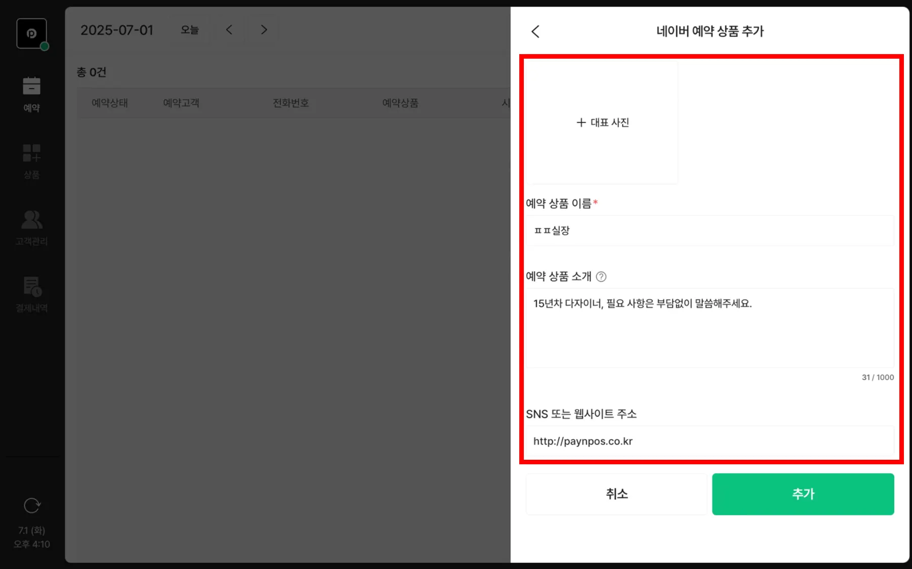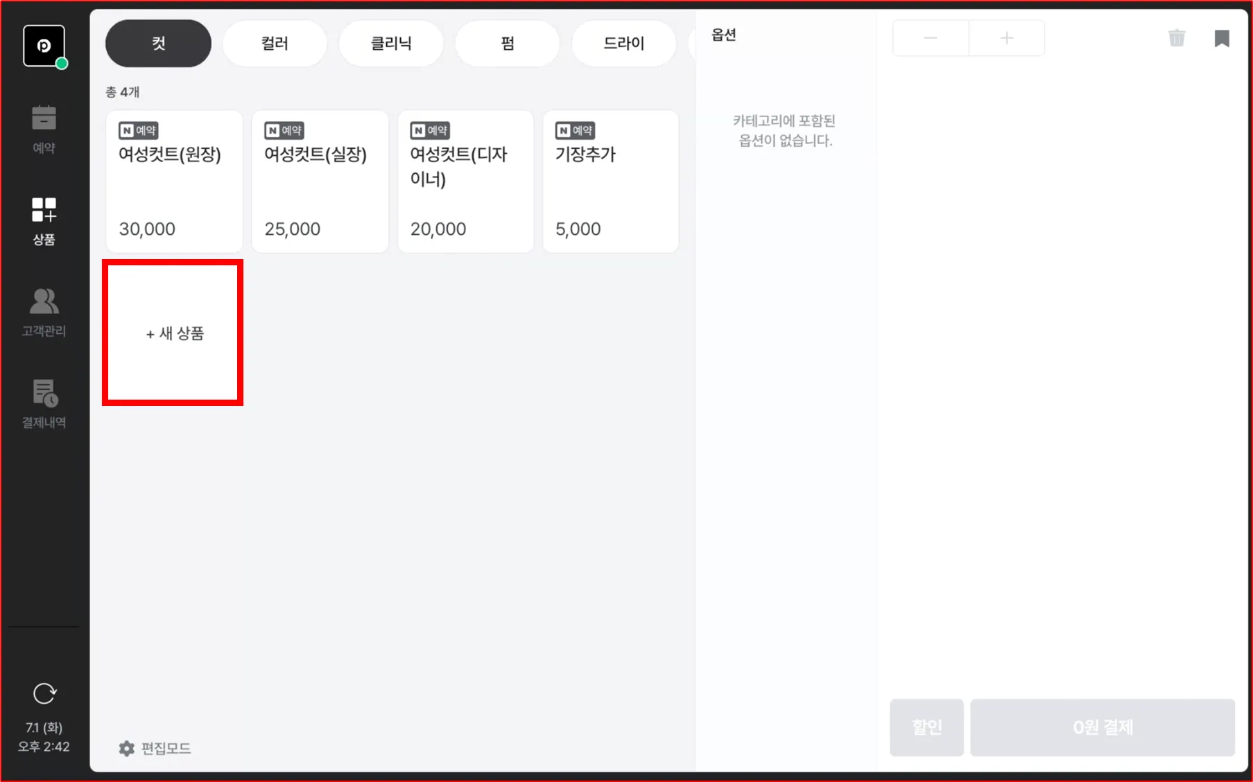 네이버 예약에 연결된 포스 상품은 옵션을 사용할 수 없어요.