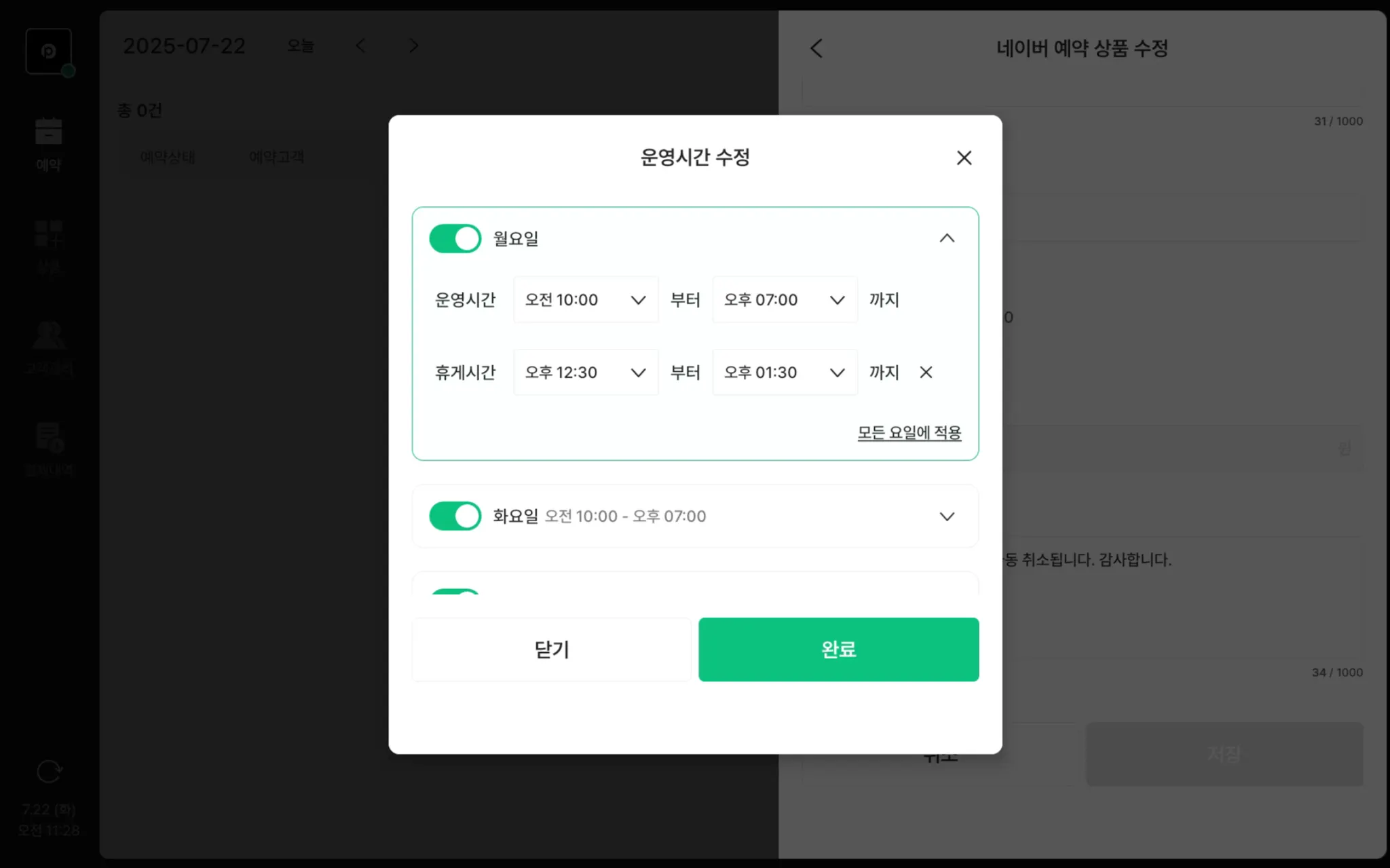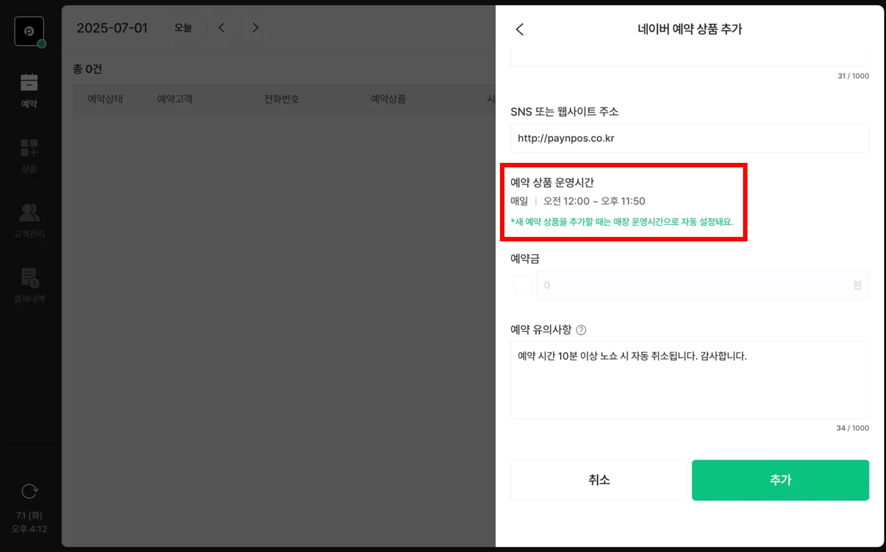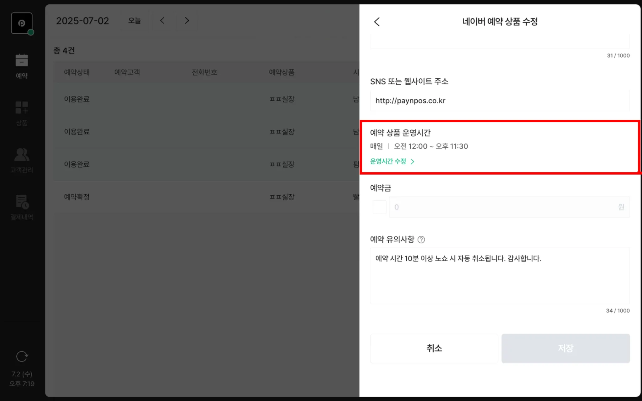 네이버 예약에 연결된 포스 상품은 옵션을 사용할 수 없어요.