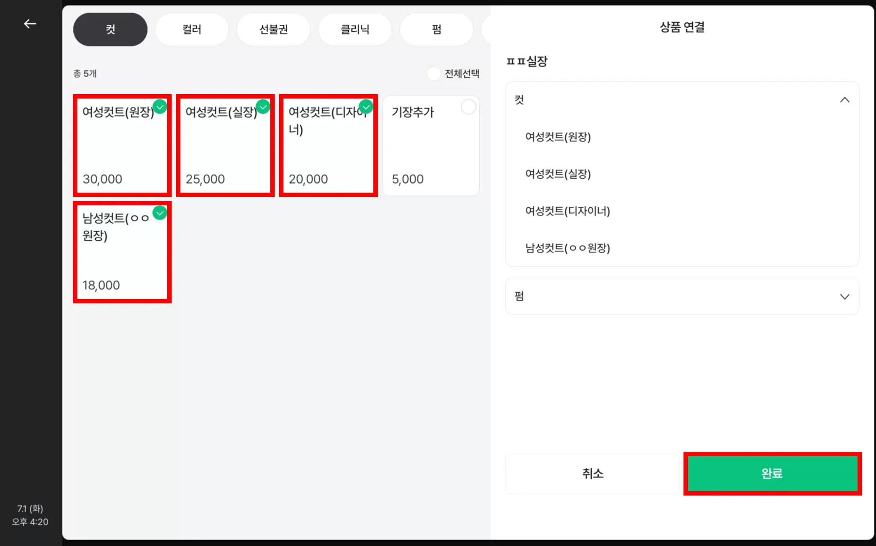 연결할 포스 상품을 선택하고 [완료]를 클릭해주세요.