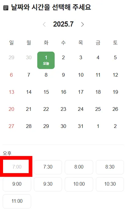 선택한 예약 상품의 날짜/시간 에 네이버 예약이 비활성화돼요.