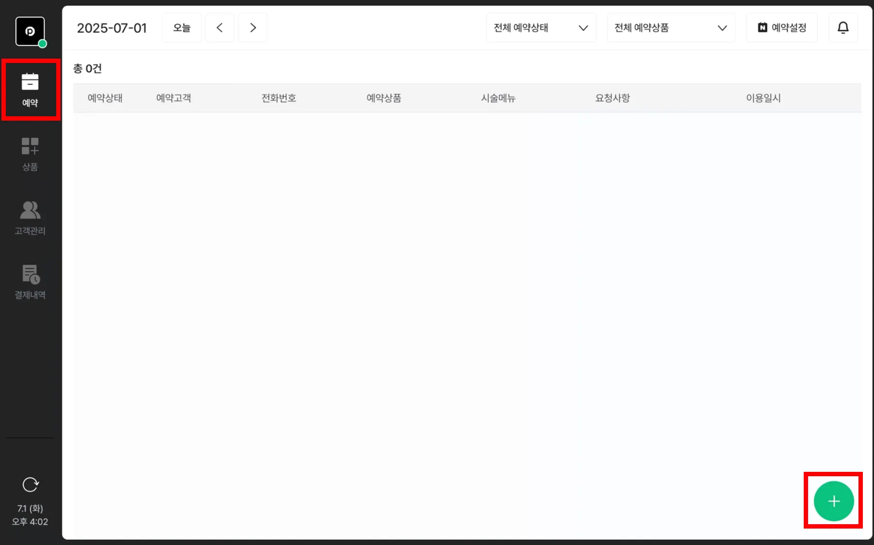 새 예약 상품 추가 버튼을 클릭해주세요.
