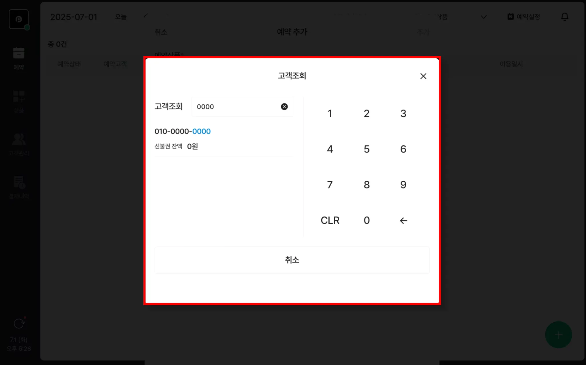 고객 조회는 전화번호 끝 4자리만 검색해주세요. 11자리 입력은 신규 고객만 가능해요.