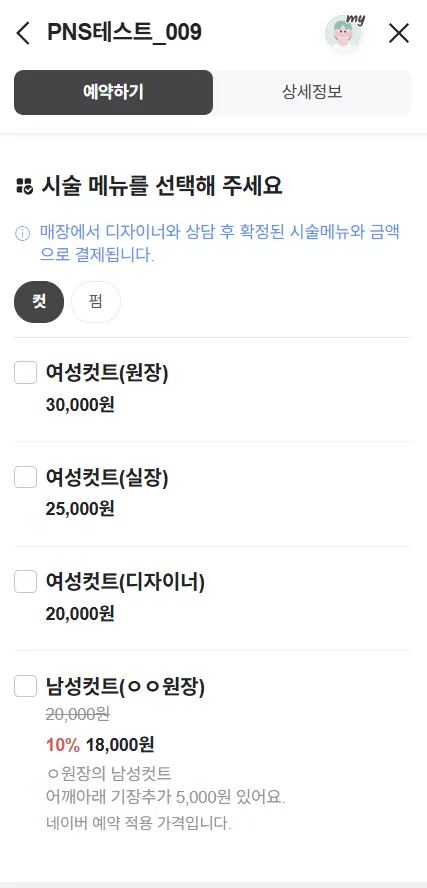 예약할 상품의 금액은 네이버 예약 금액과 동일하게 적용돼요.