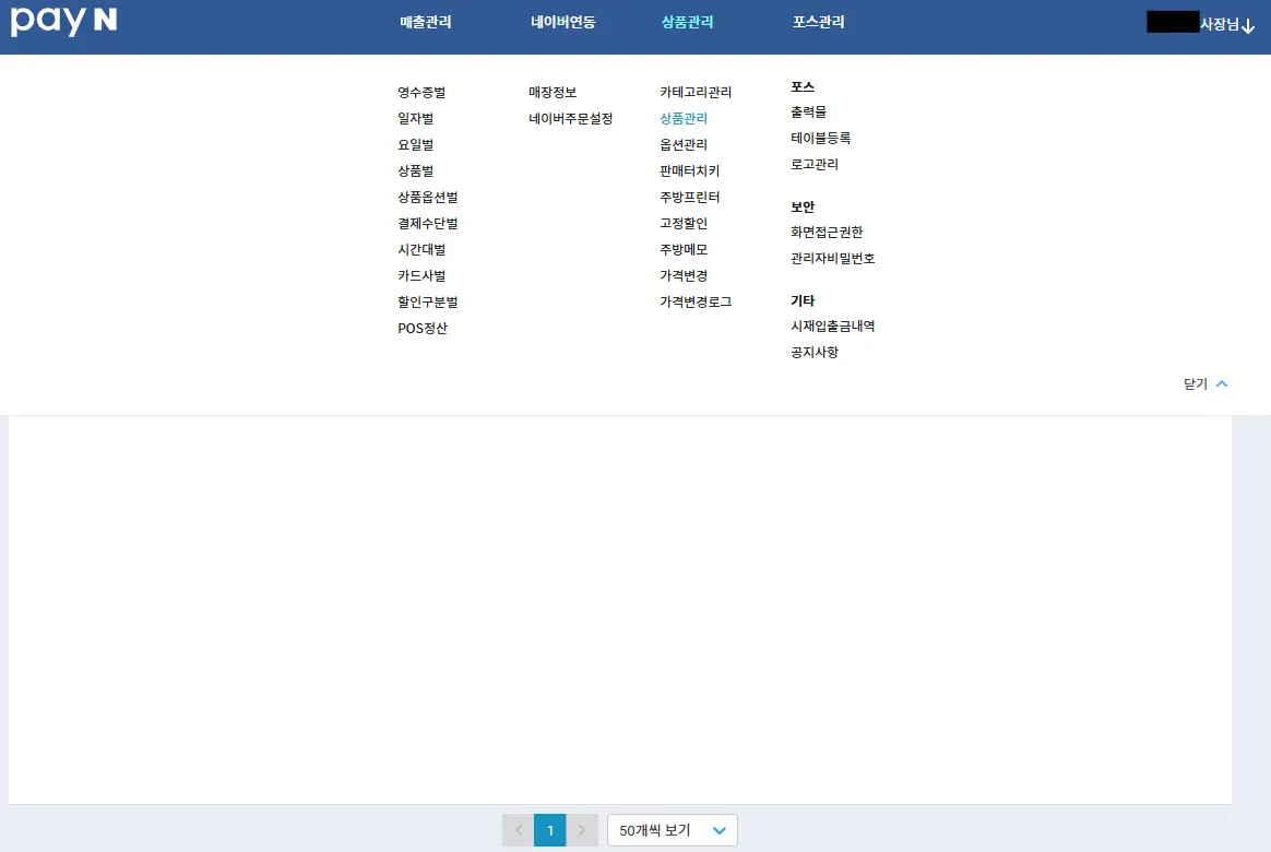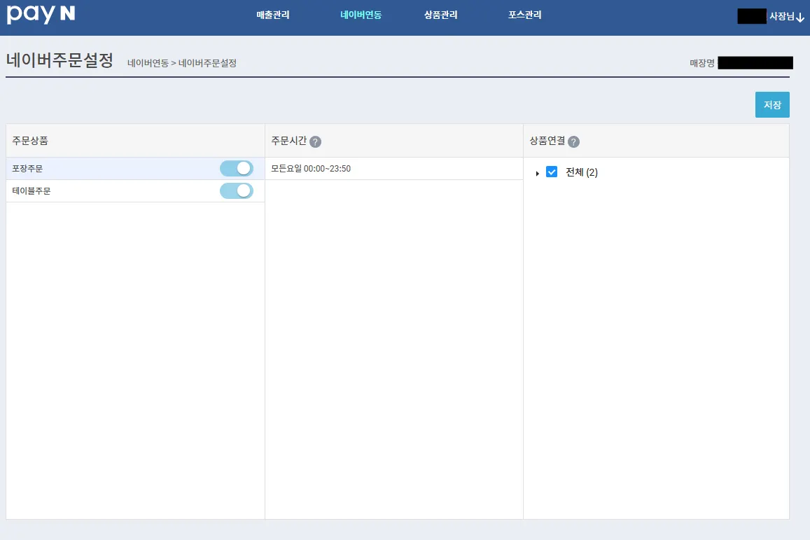 2) 페이앤 사장님 페이지를 통해 상품등록 확인 및 네이버 연동 확인