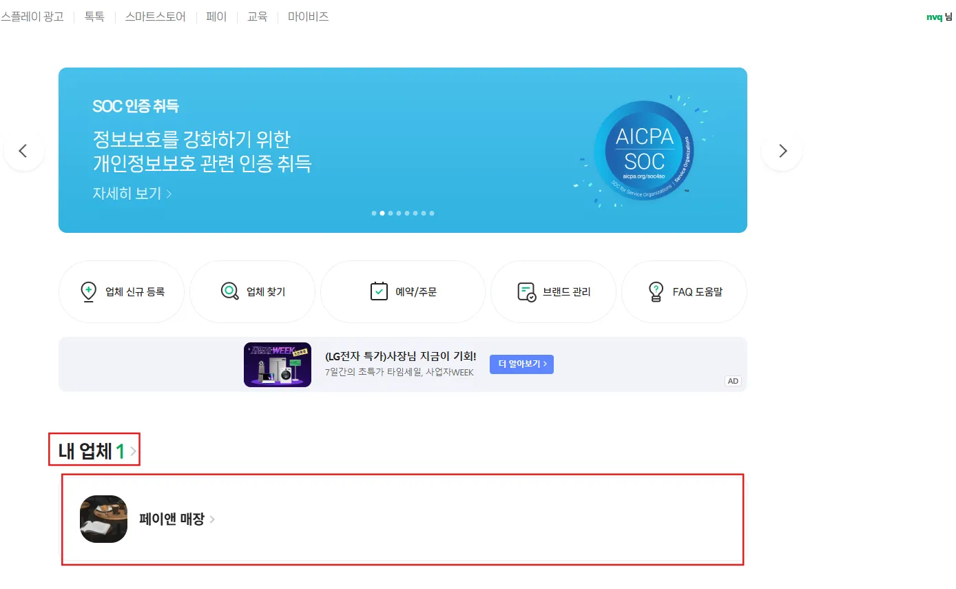 4) 페이앤 서비스가 등록된 업체를 [클릭]