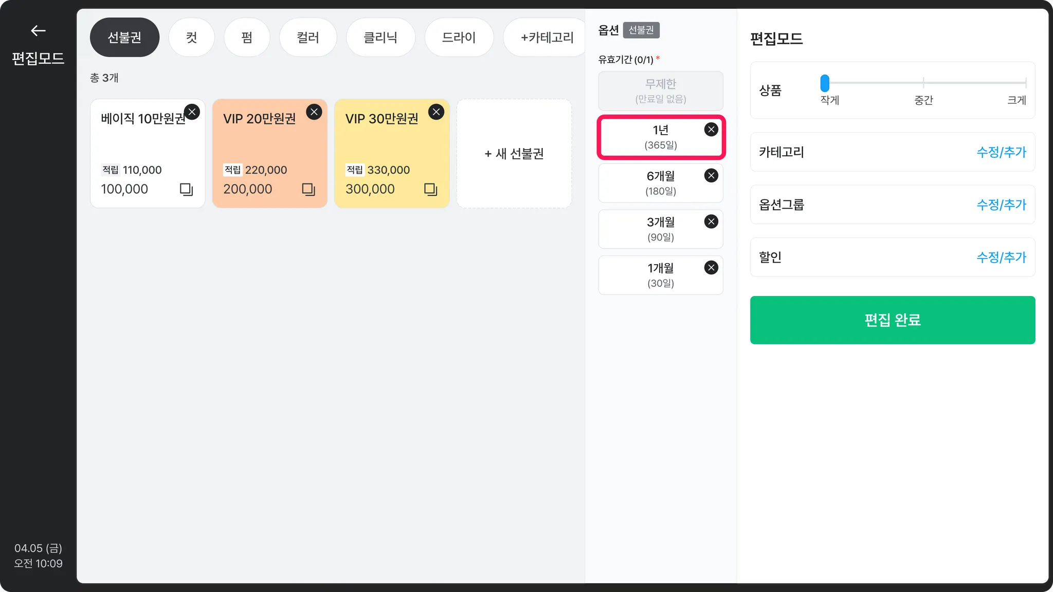 편집모드에서 수정할 유효기간 항목을 눌러주세요.