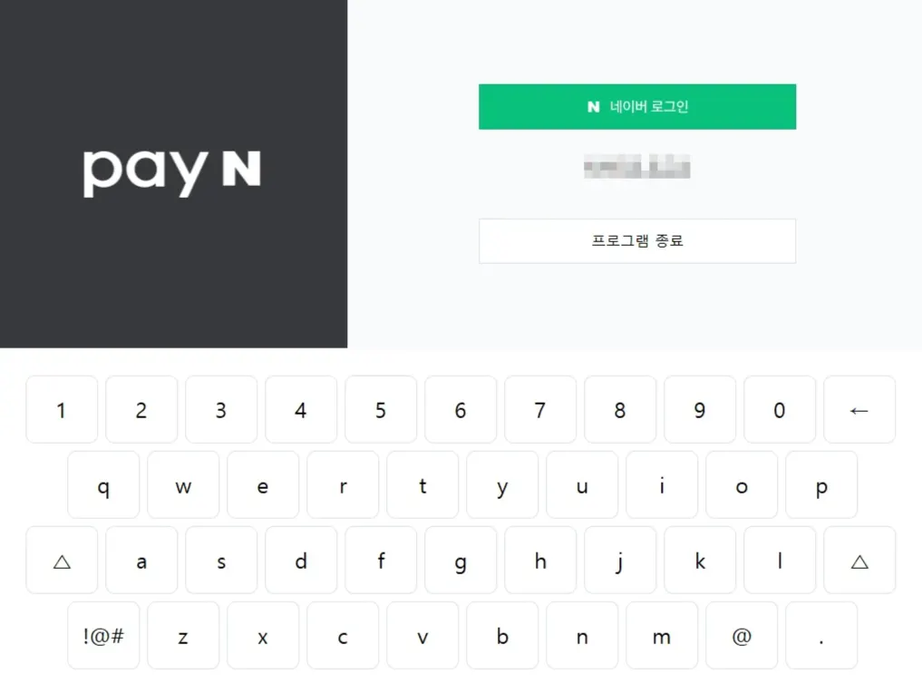 설치 후 PAYN 프로그램을 실행 해서 페이앤 서비스를 통해 등록한 네이버ID로 로그인 해주세요.