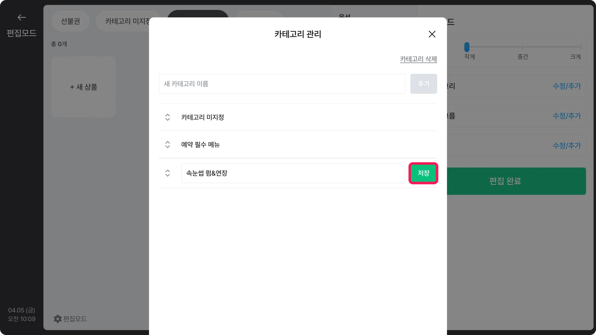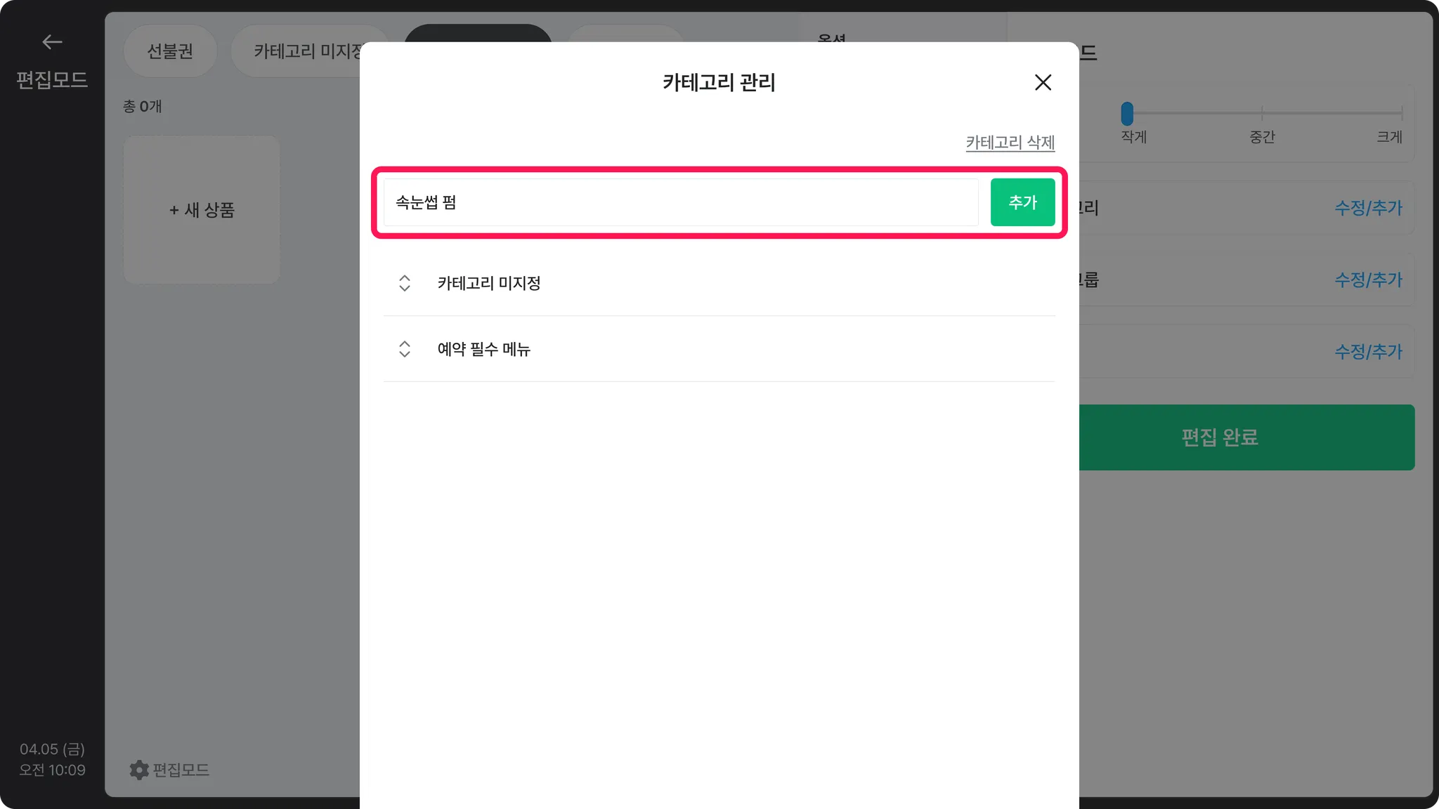 포스 상품 수정/삭제