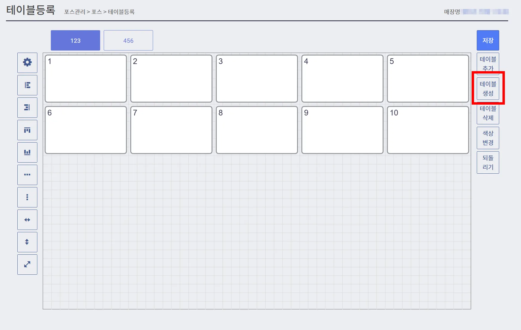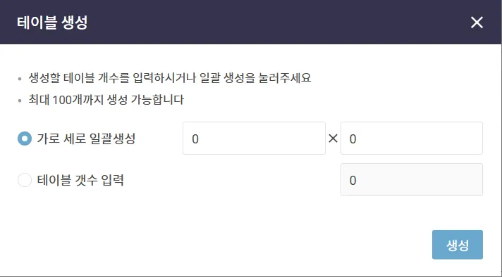 층을 선택한 후 [테이블 생성]을 누르면 원하는 곳에 테이블을 생성할 수 있어요.