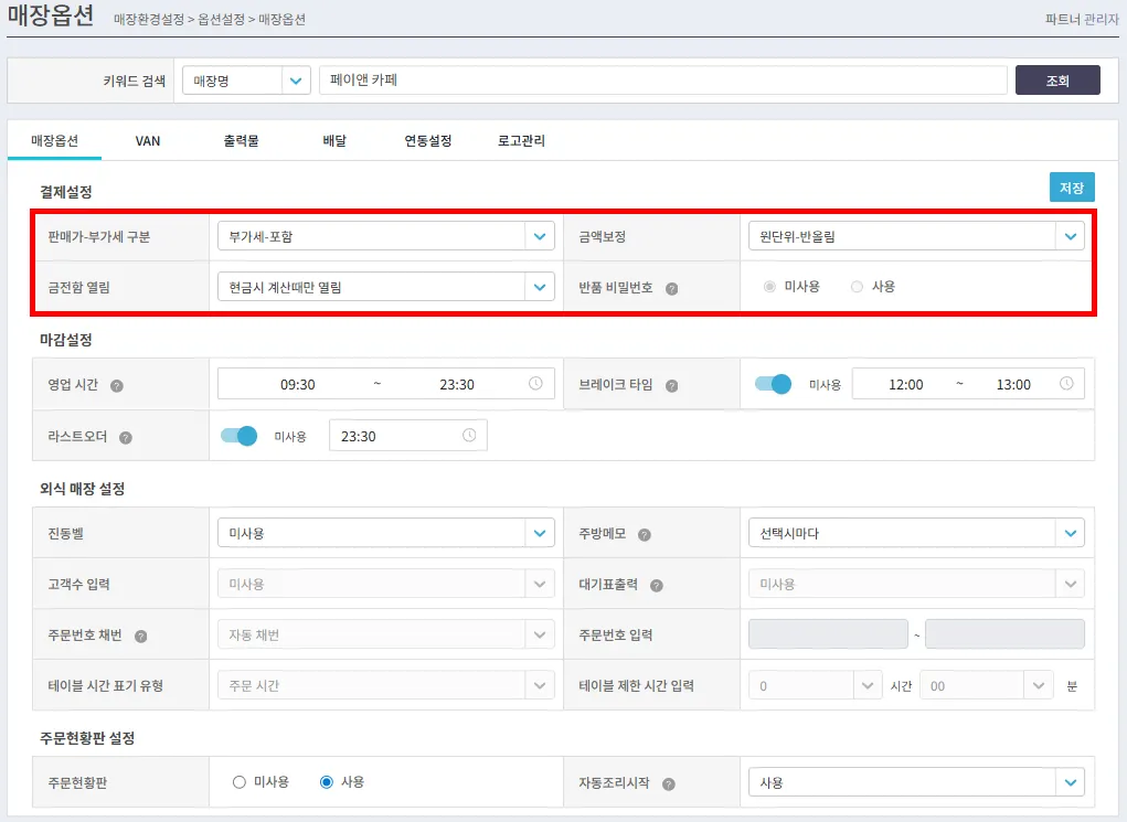 페이앤 포스 마감설정은 포스에 대한 마감이 아닌 네이버 주문/예약에 반영되는 영업 시간이에요.외식 매장 설정