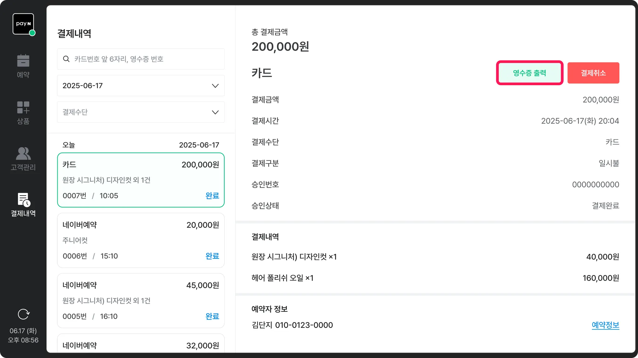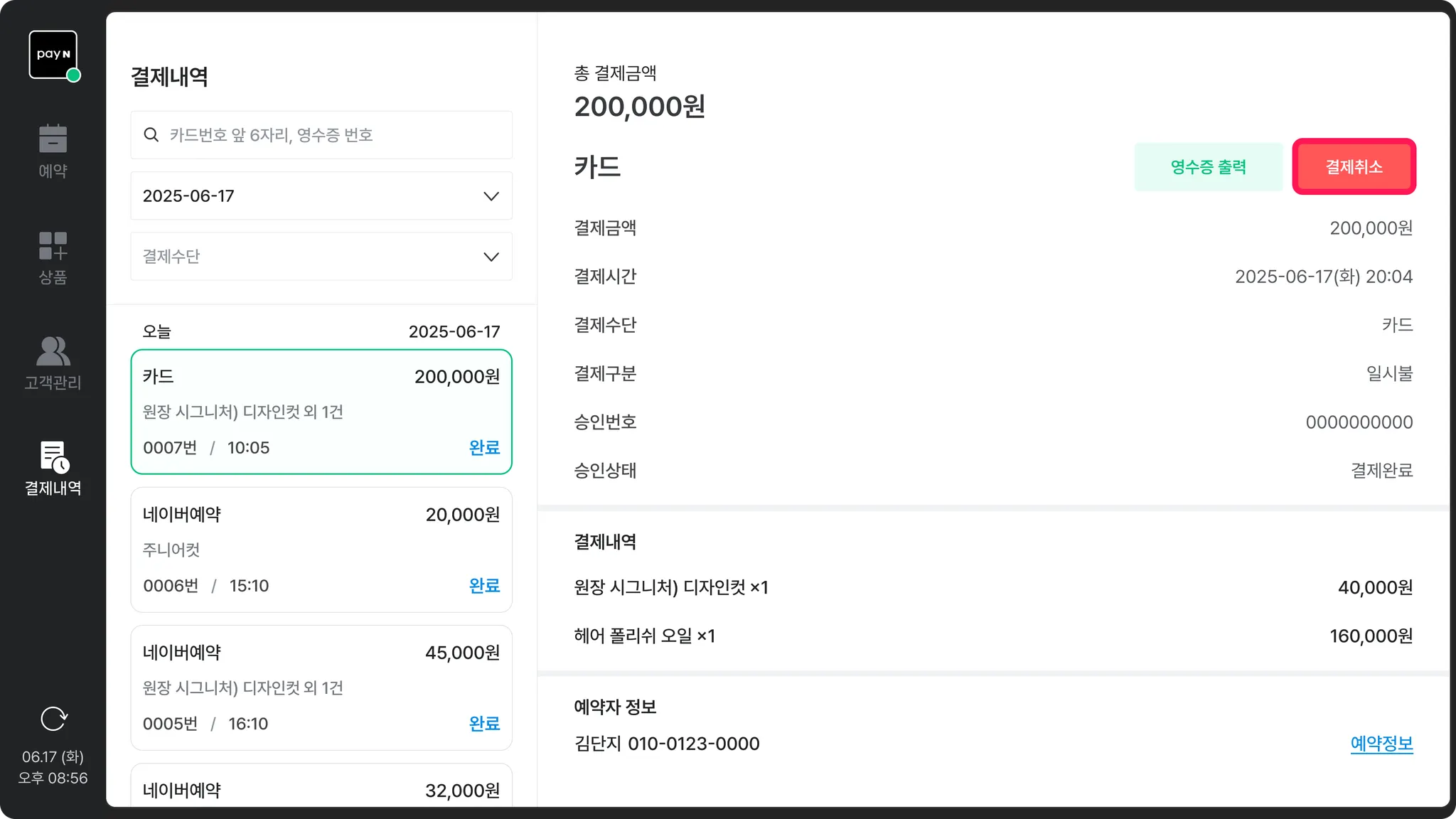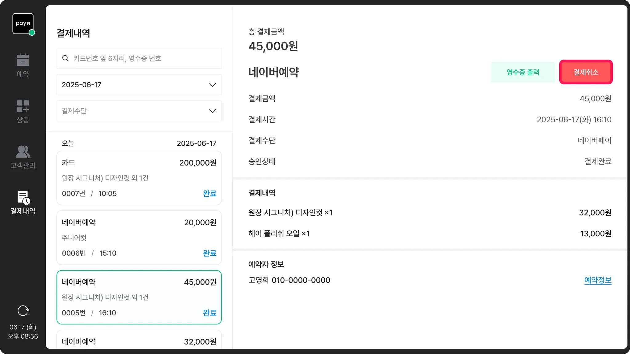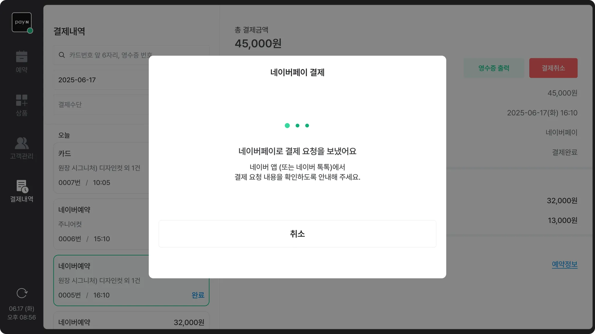 네이버페이 결제 취소 요청을 보내고, 곧 결제가 취소돼요.영수증 추가 출력