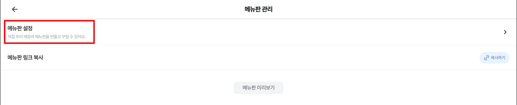 메뉴판 설정을 선택해주세요.