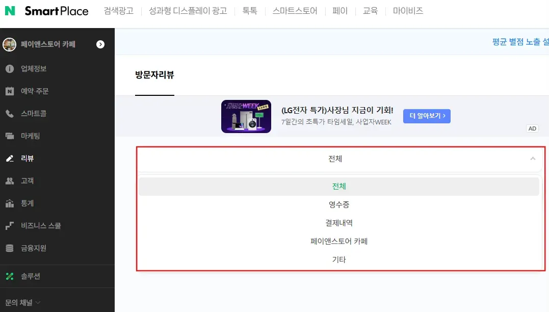 1) 네이버 스마플 접속 후 리뷰 카테고리 선택