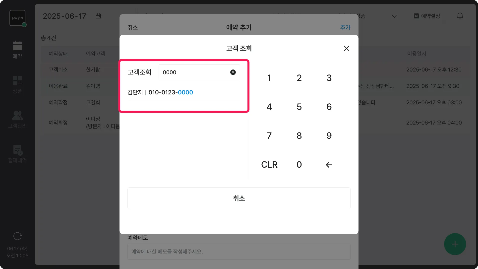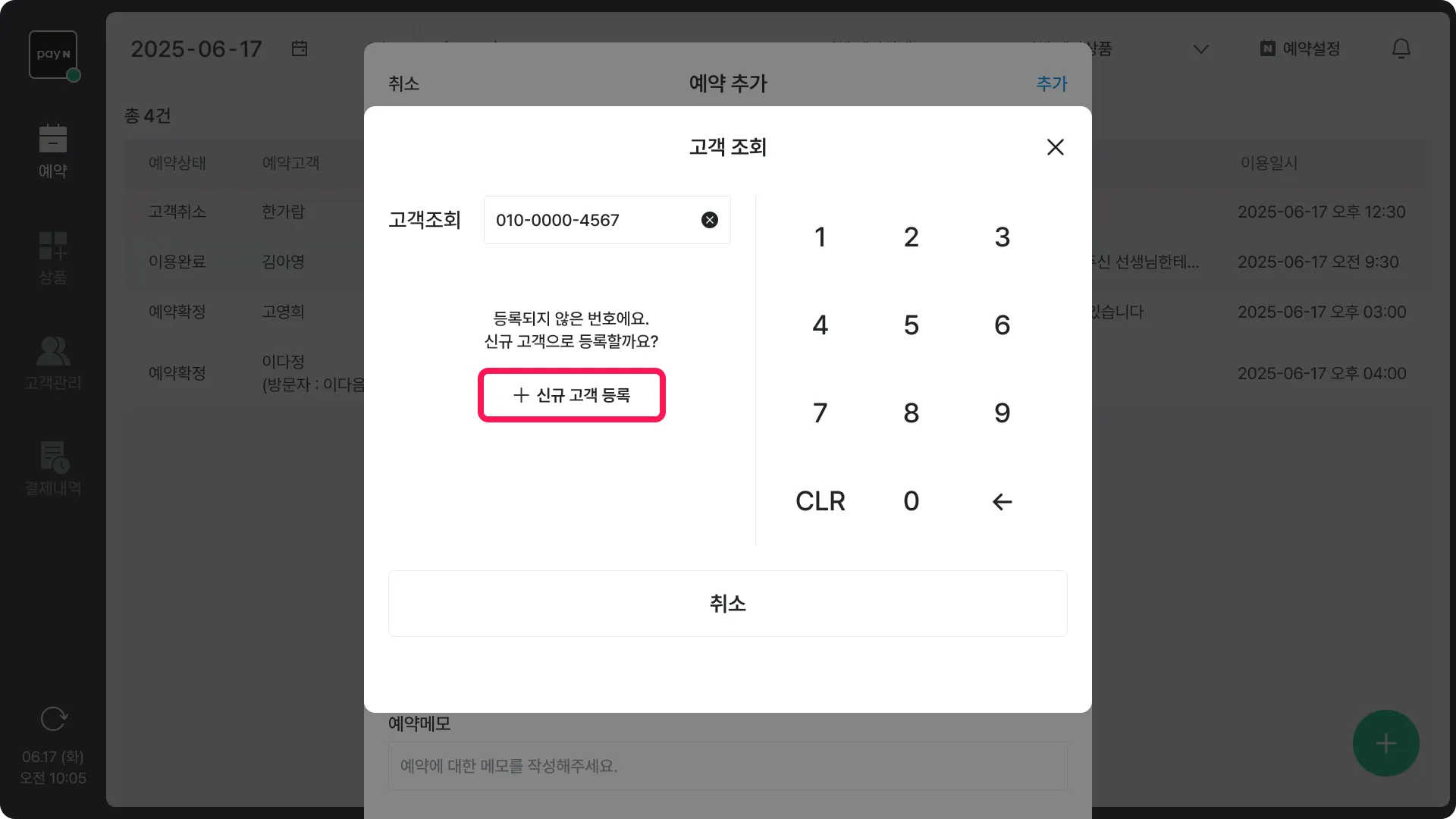 예약고객 : [고객 조회]를 누른 후, 기존/신규 고객을 등록할 수 있어요.