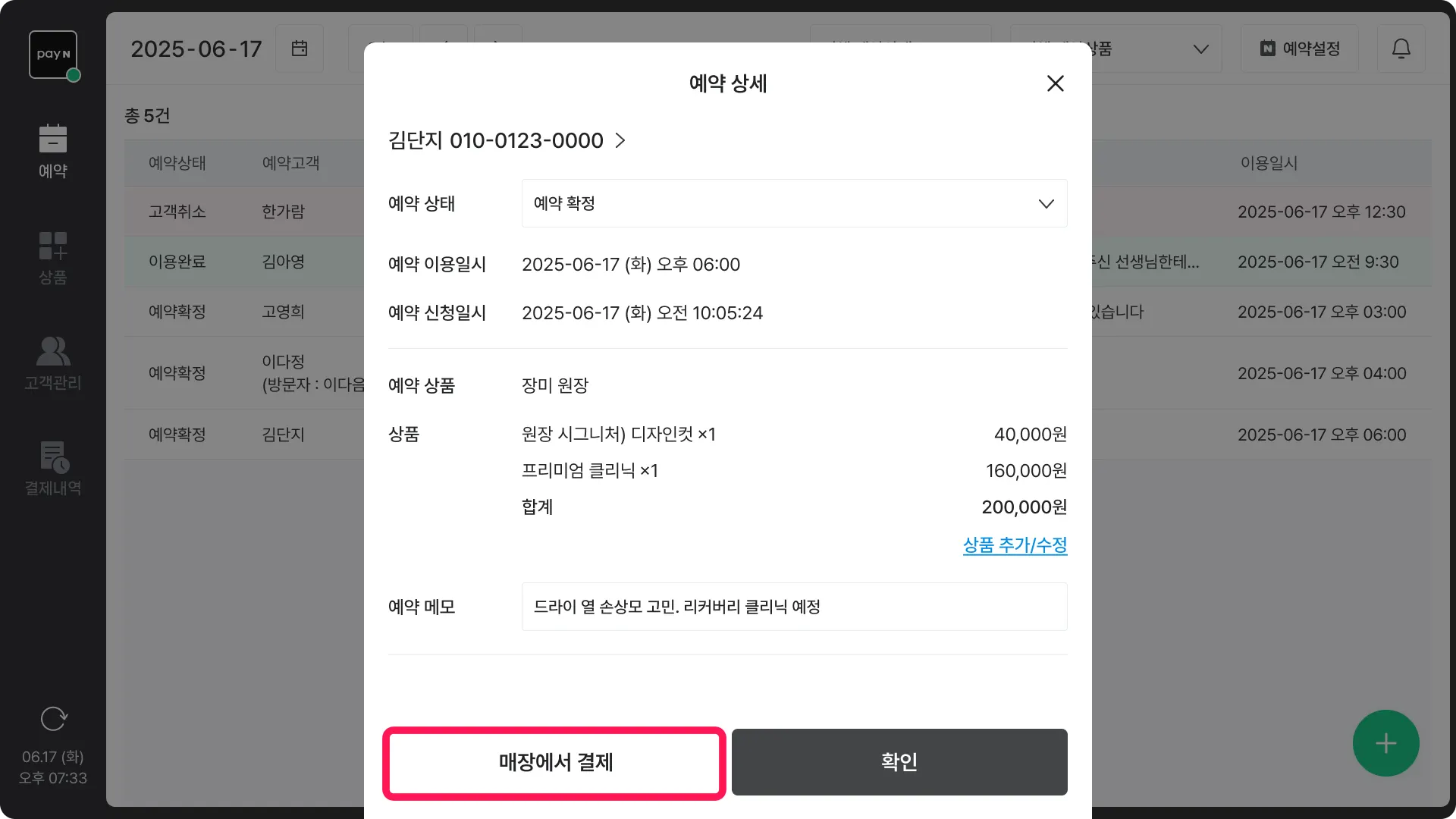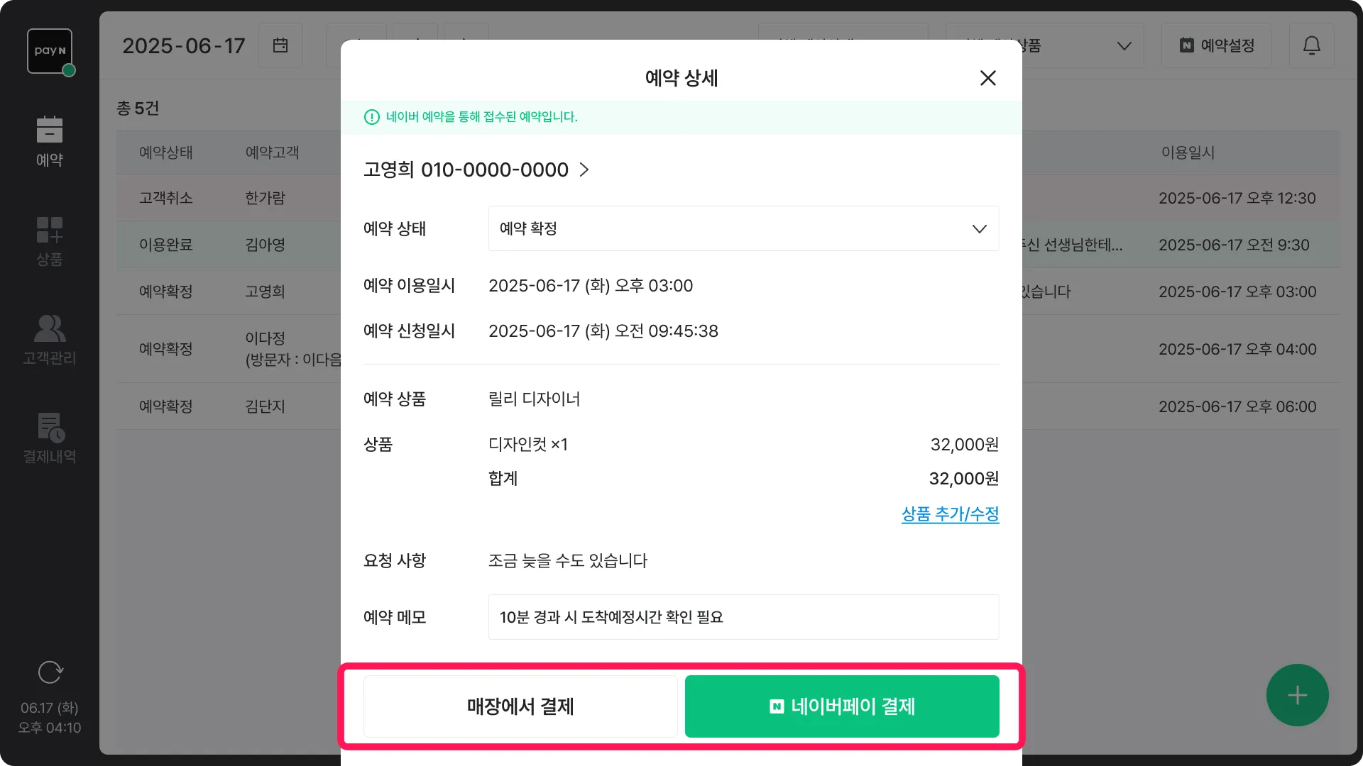 고객이 직접 네이버 예약 : 매장에서 결제 또는 네이버페이 결제 요청
