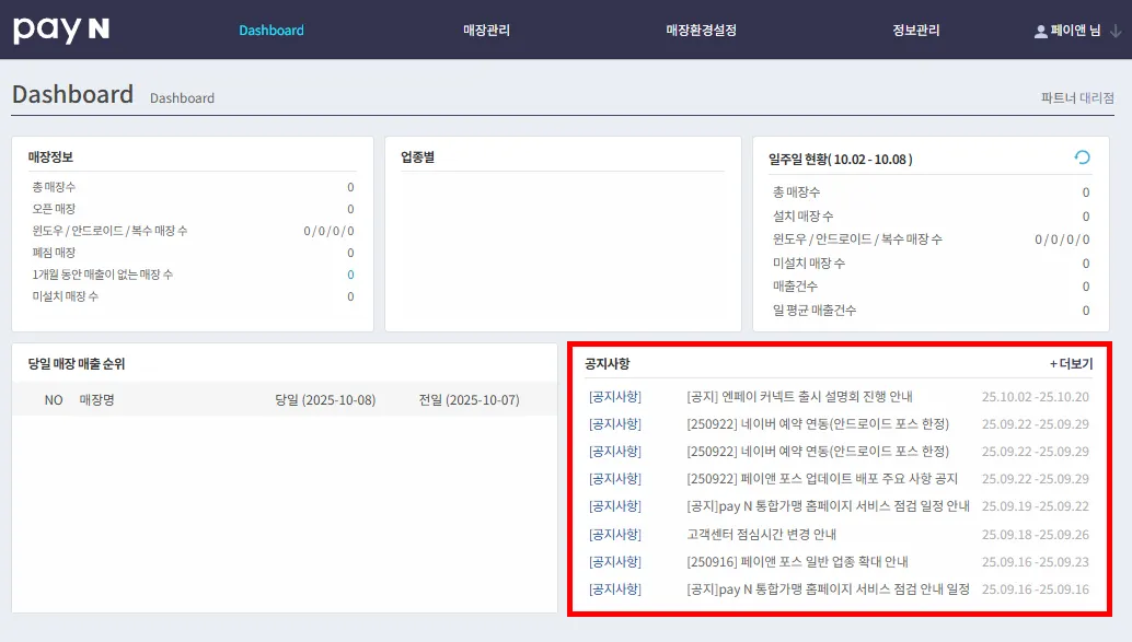 일주일 동안의 설치된 매장 정보를 확인할 수 있어요.