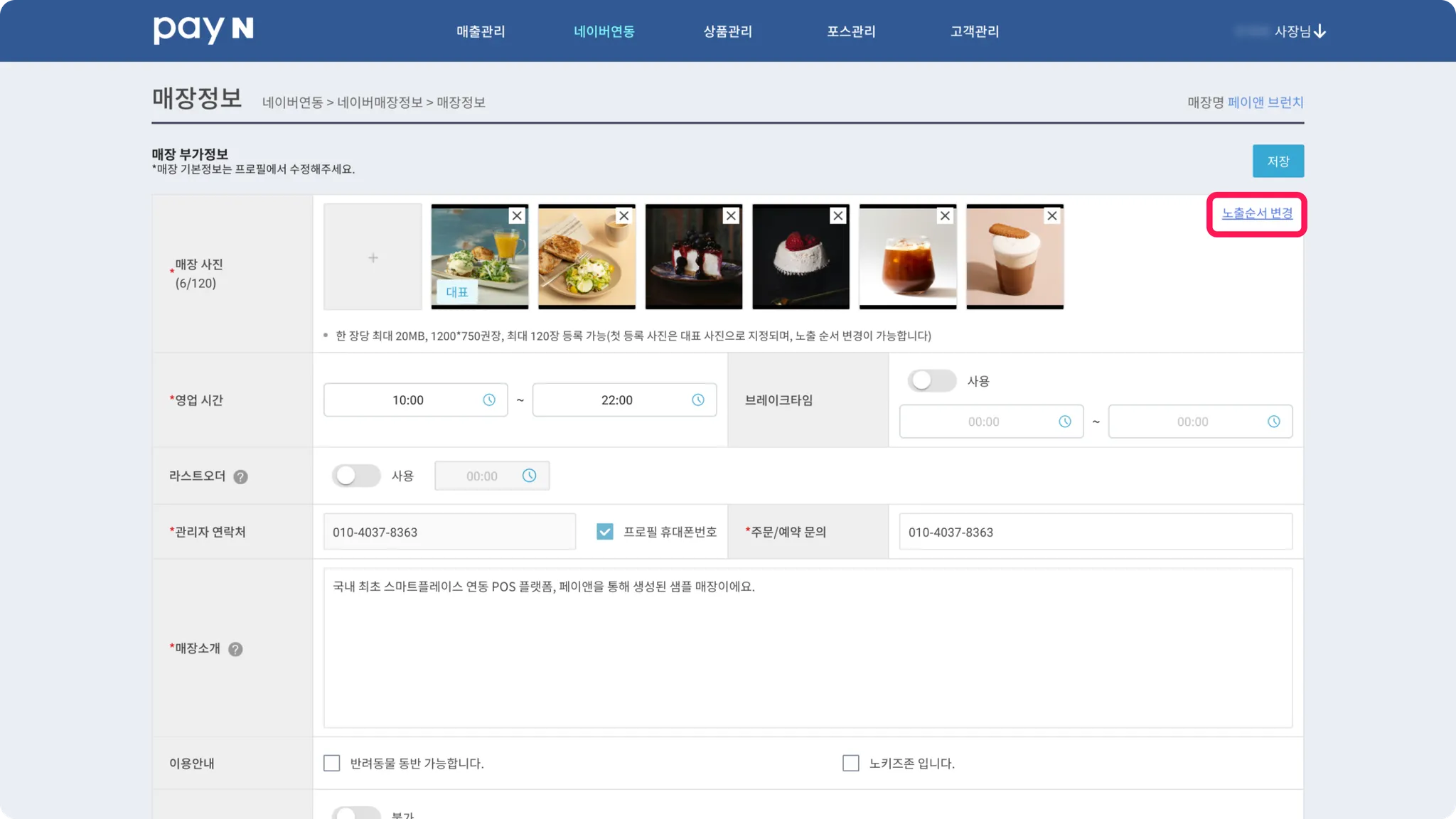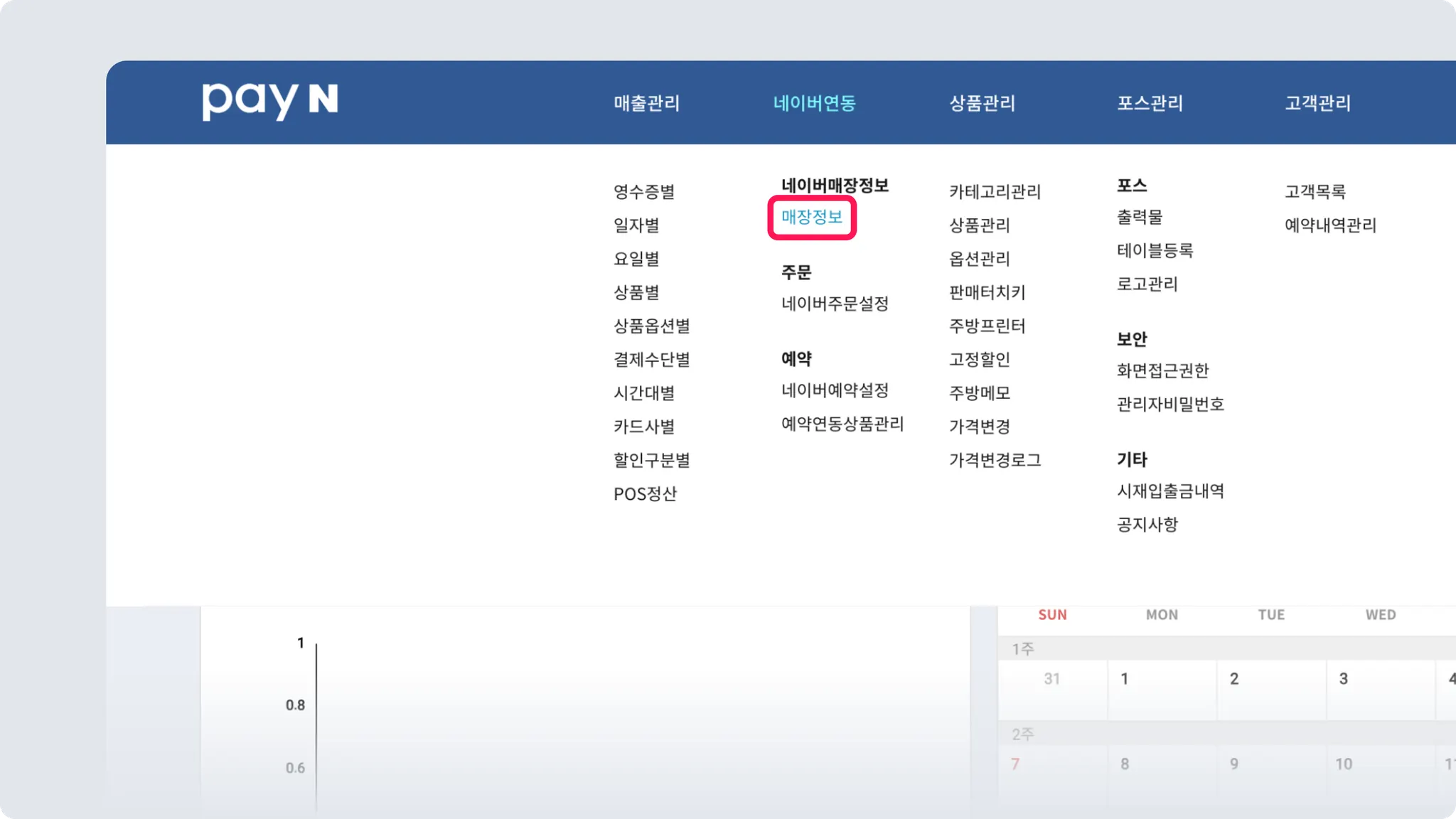 [네이버 연동] > [매장 정보]를 눌러주세요.
