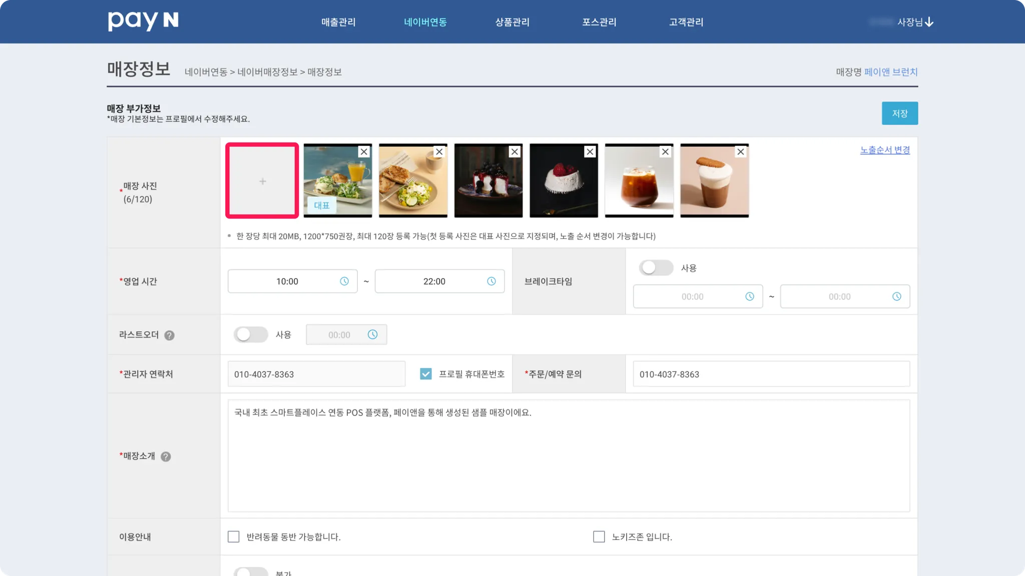스마트플레이스에 연동되는 매장 사진은 최대 120장까지 첨부 가능해요.
