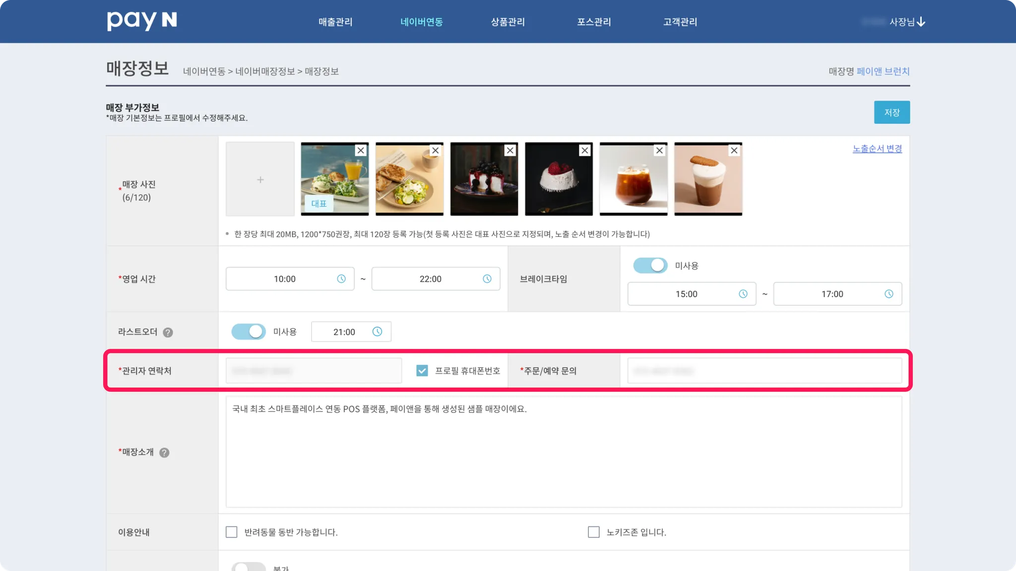 관리자 연락처 : [스마트플레이스 예약·주문] > [기본 정보] 관리자 연락처에 동시 등록돼요.