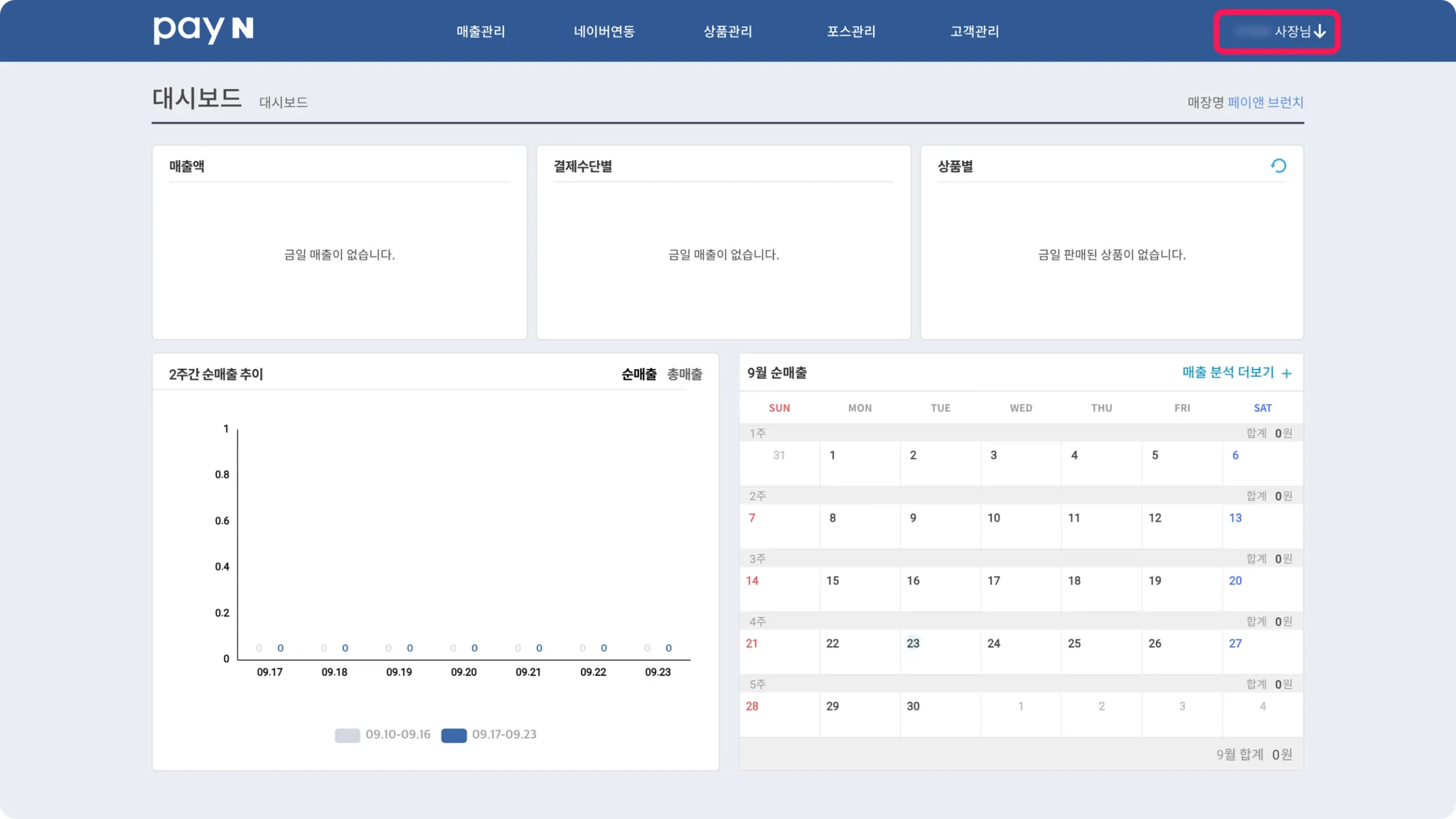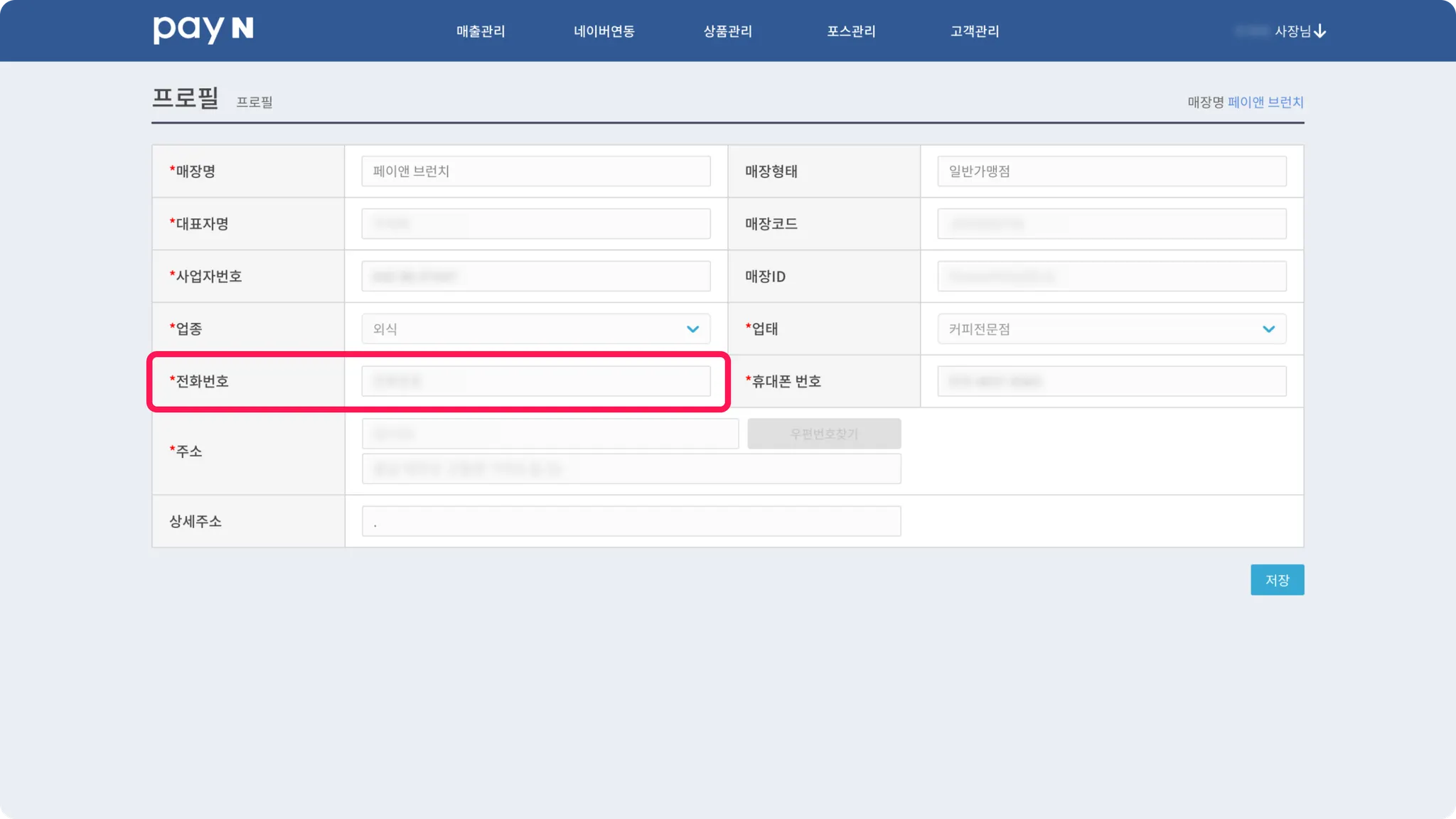 페이앤 포스에서 로그인하는 네이버 아이디와 동일한 정보로 로그인해요.