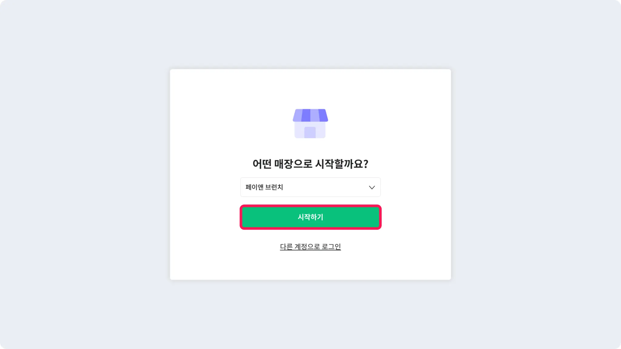 매장을 선택한 후, [시작하기]를 눌러주세요. ex) 페이앤 브런치프로필