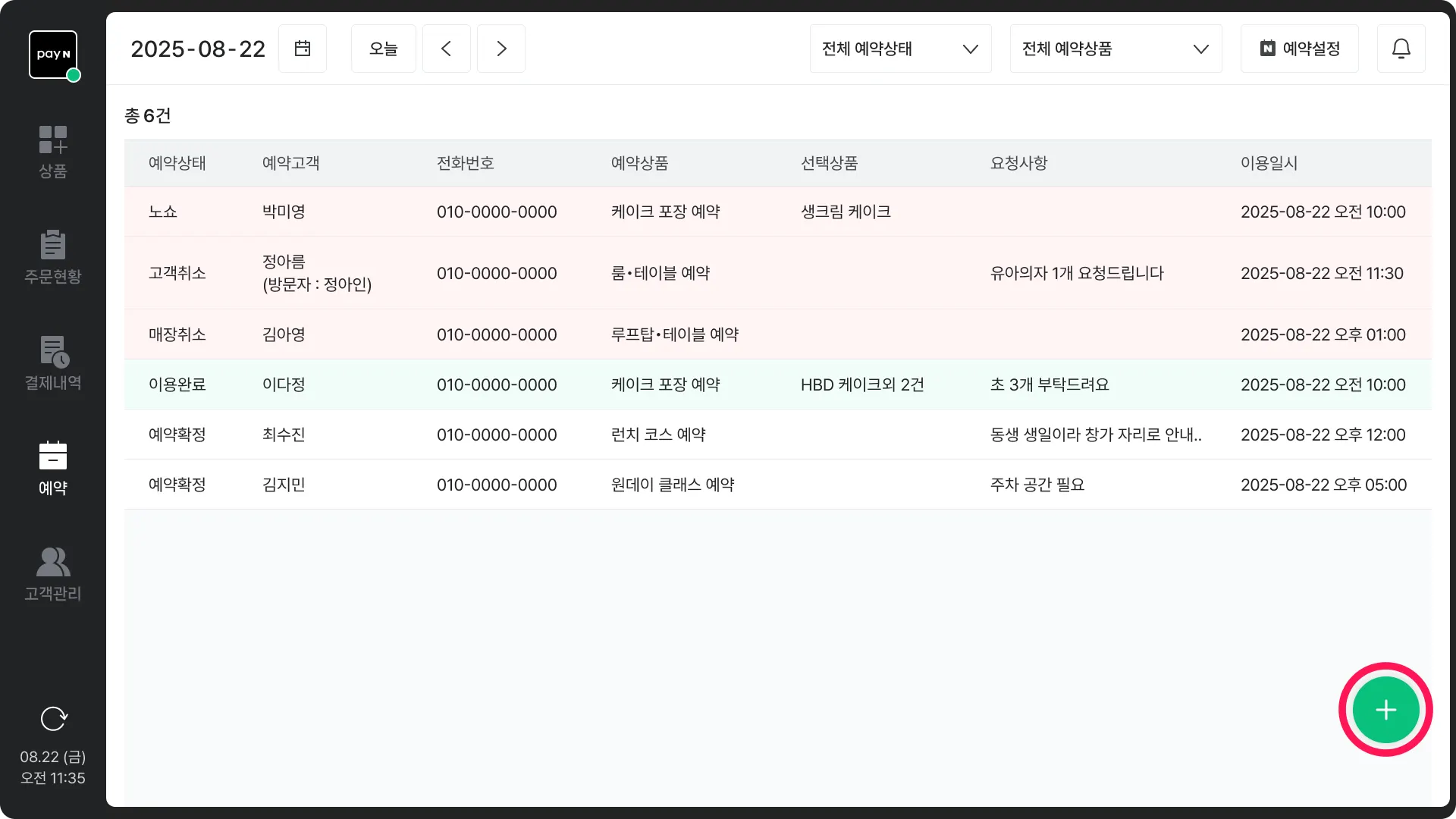 입력을 마친 후, [추가]를 누르면 예약이 생성돼요.예약 처리