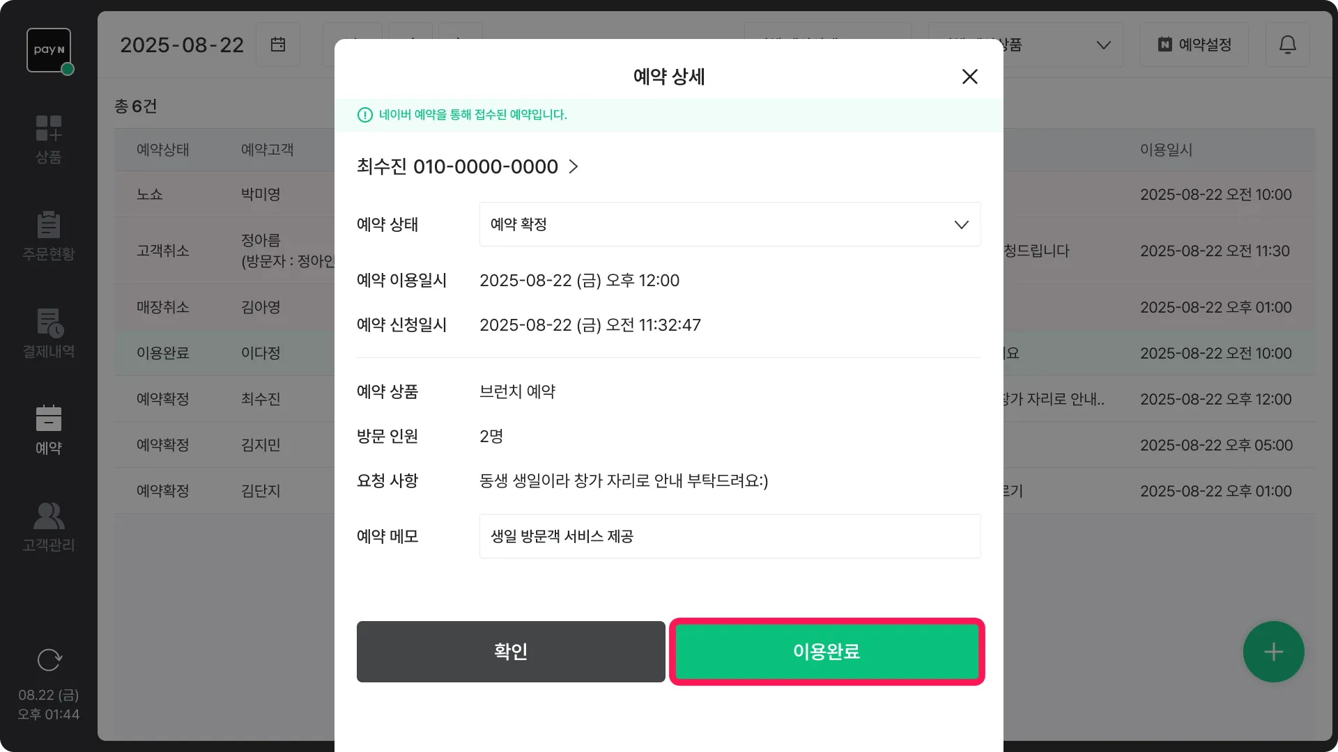 네이버 예약은 예약확정 상태로만 받을 수 있어요.•