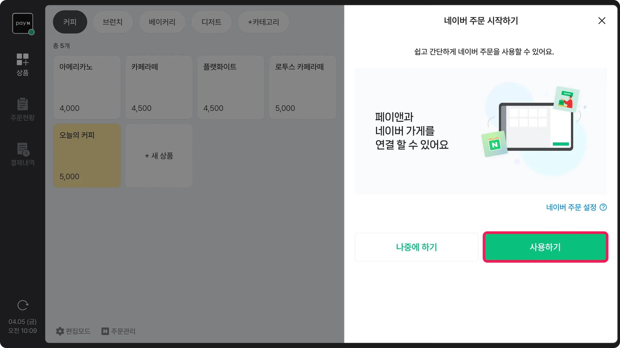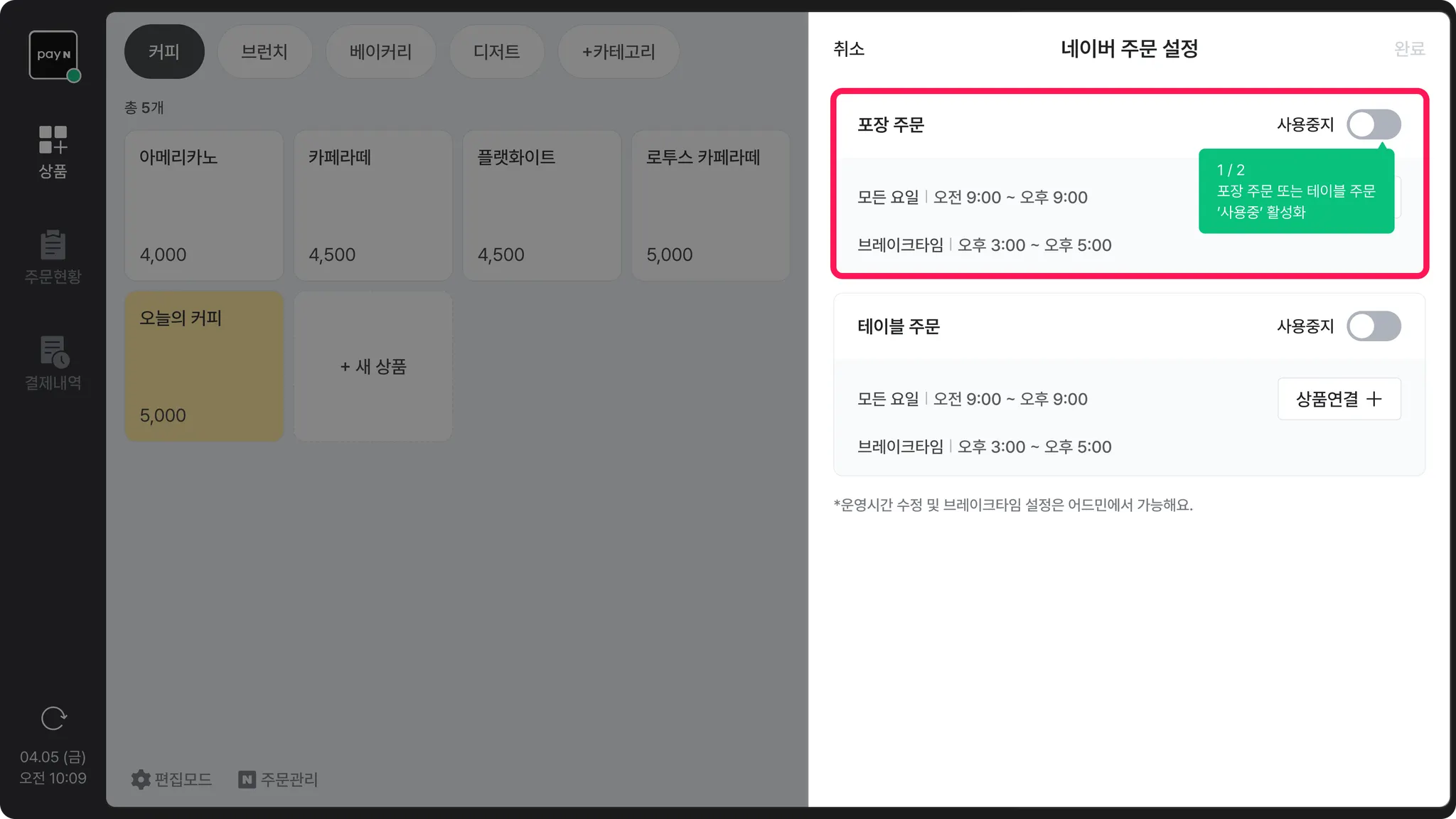 미연동 상품은 네이버 주문에 노출되지 않고, 매장에서만 주문을 받을 수 있어요.
