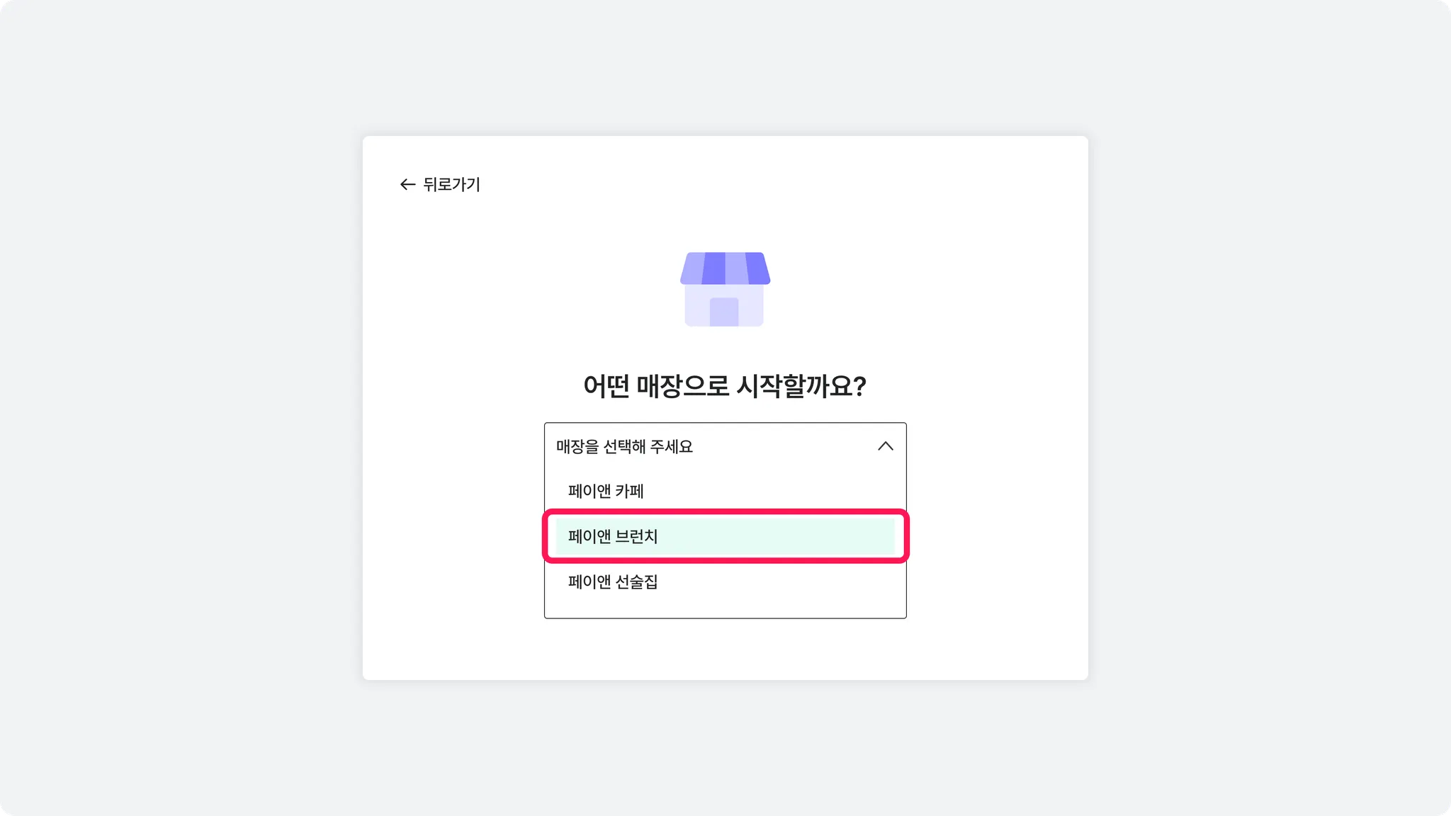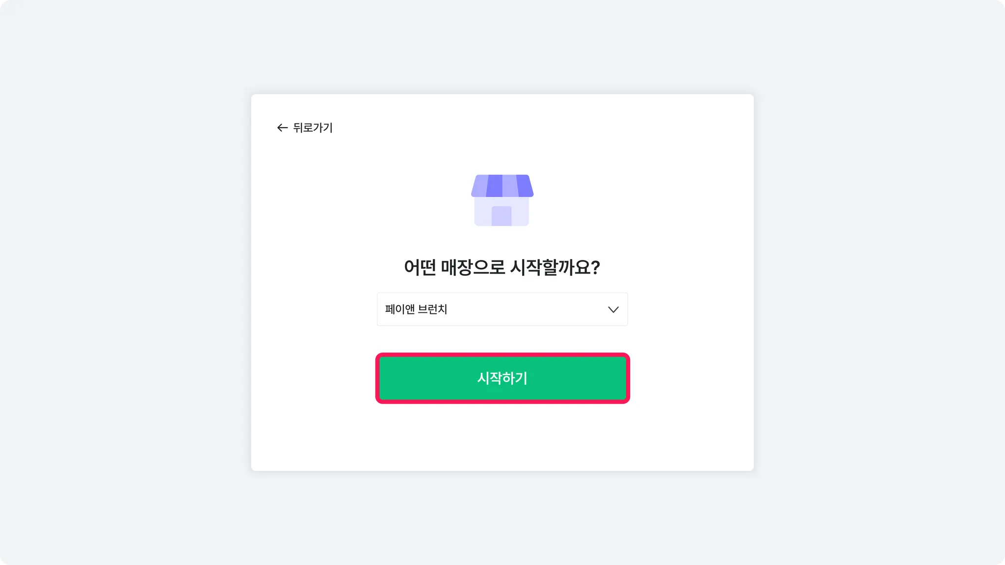 로그인할 매장을 선택 후, [시작하기]를 눌러주세요.기본 설정