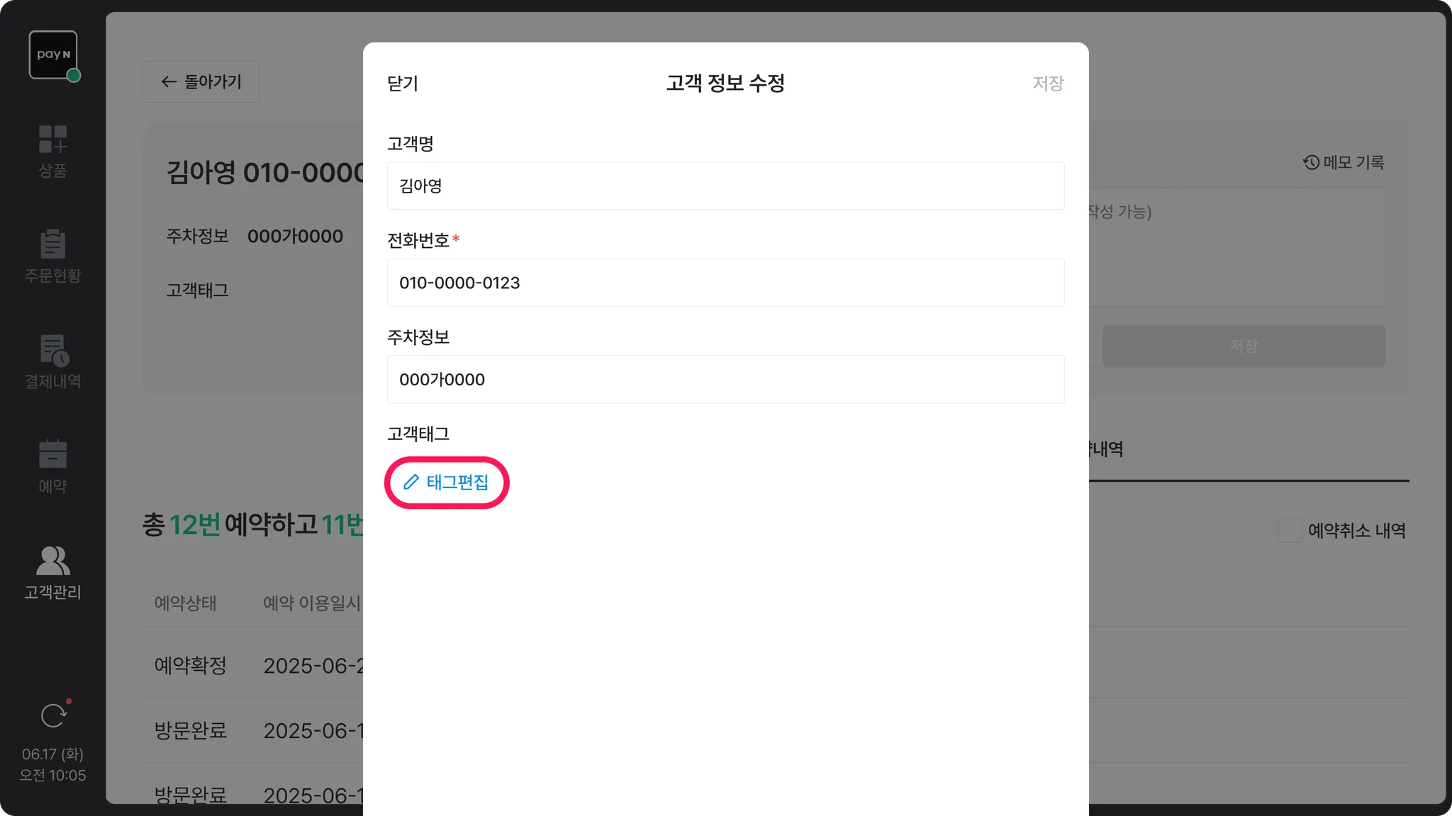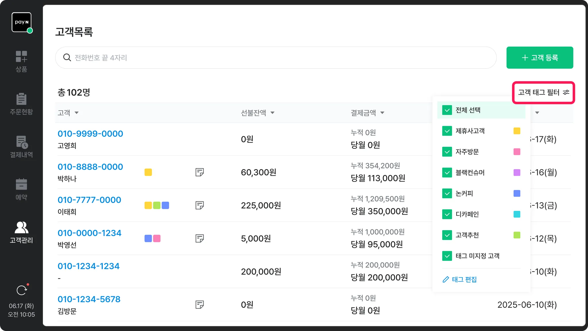 고객 태그를 적용할 고객의 전화번호 또는 이름을 눌러주세요.