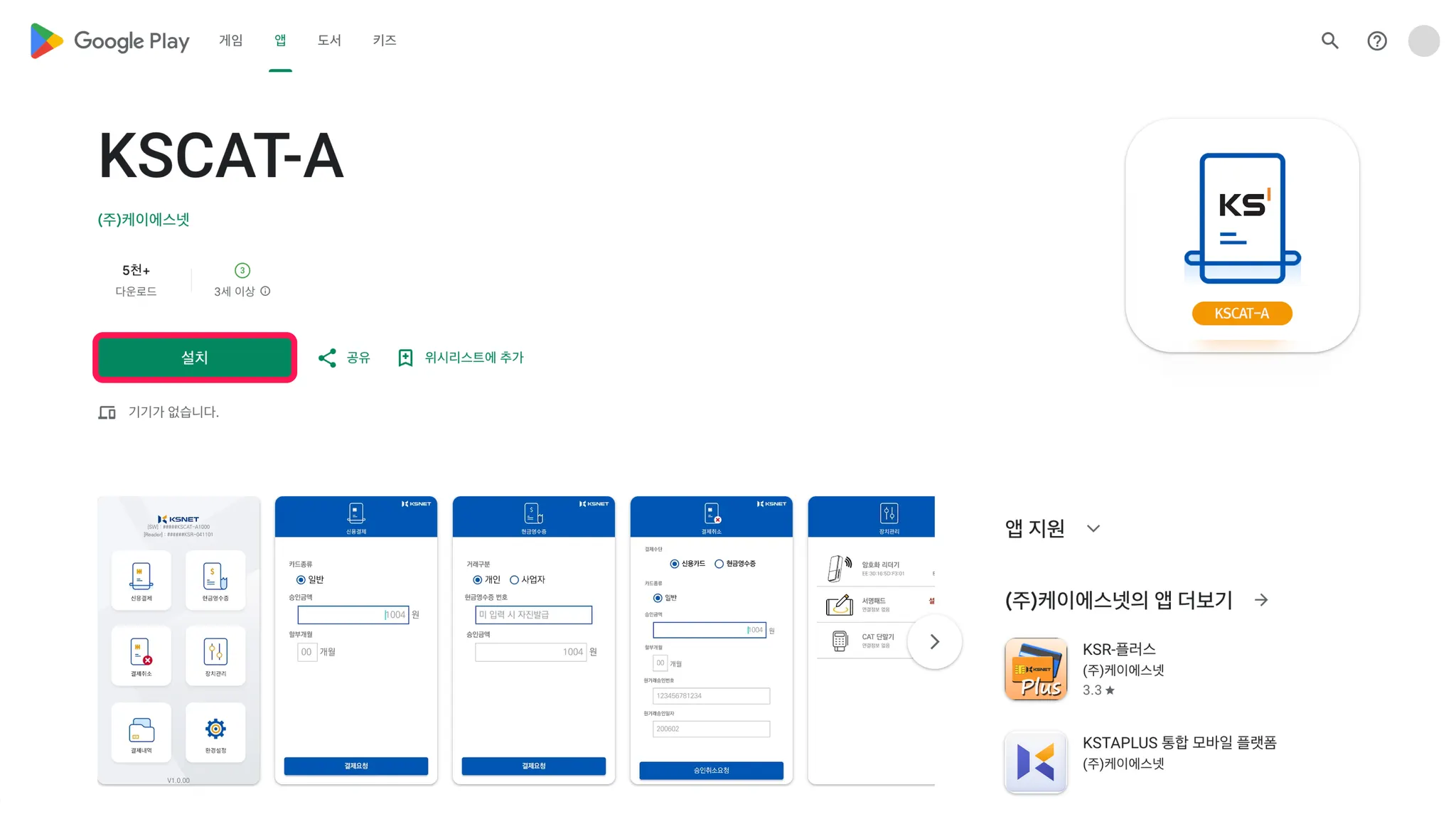 AP-100에 KSCAT-A 앱을 설치해 주세요.