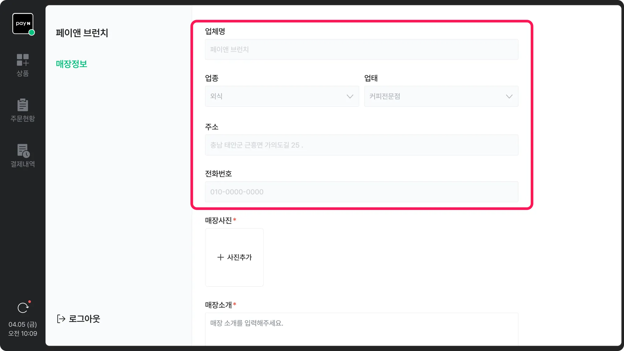 정보 변경이 필요하신 경우, 페이앤 고객센터를 통해 요청해 주세요.