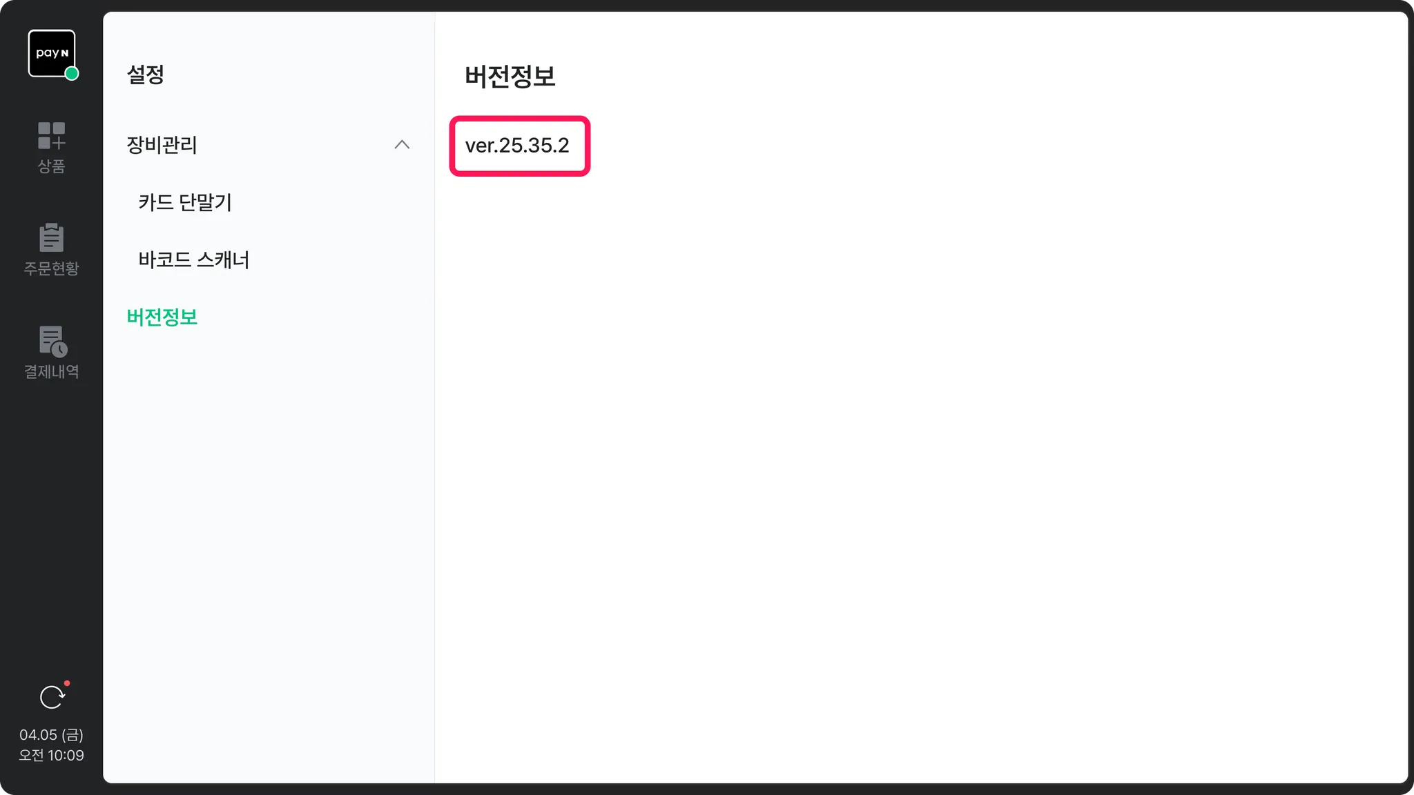 [버전정보]를 누르면 현재 포스 버전을 확인할 수 있어요.