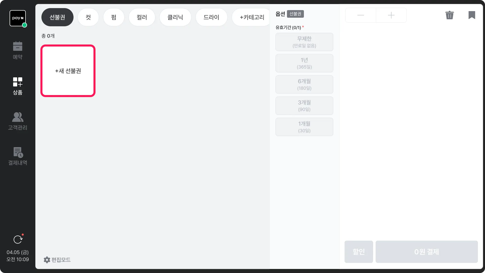 [선불권] 카테고리에서 [+새 선불권]을 눌러주세요.
