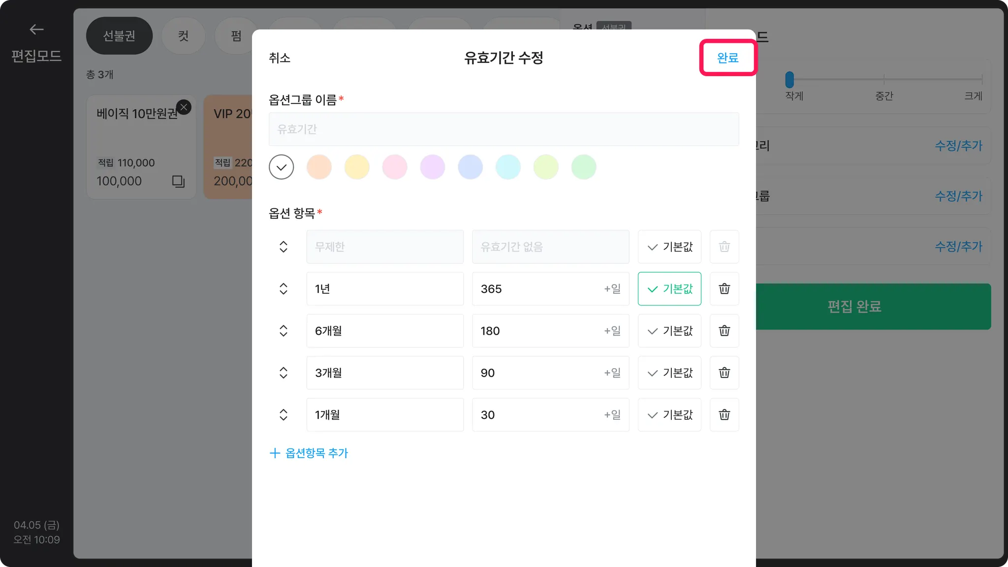 편집모드에서 수정할 유효기간 항목을 눌러주세요.
