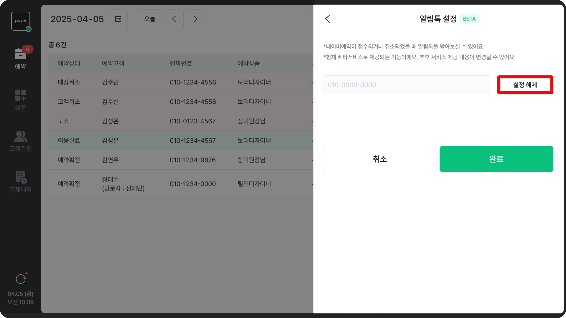 포스에서 직접 예약을 생성하거나 취소하신 경우에는 알림톡이 발송되지 않아요.