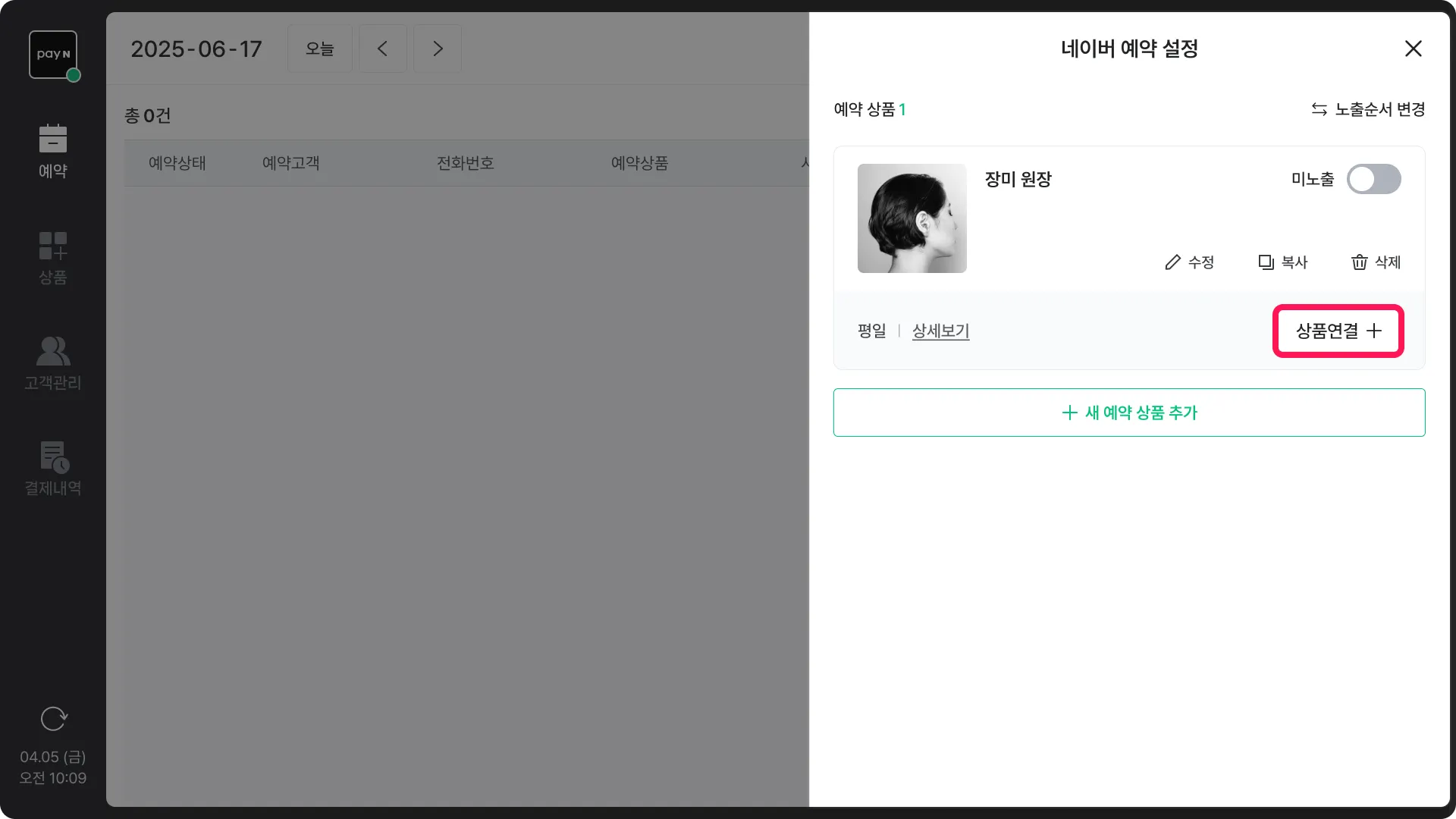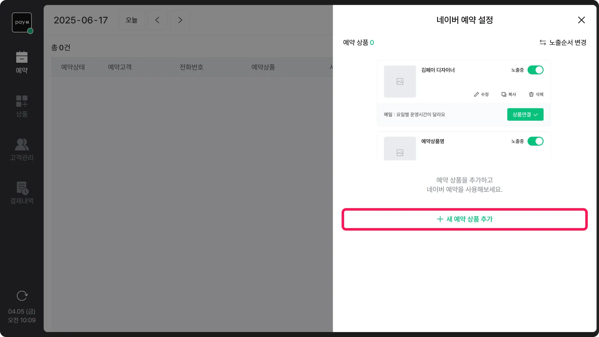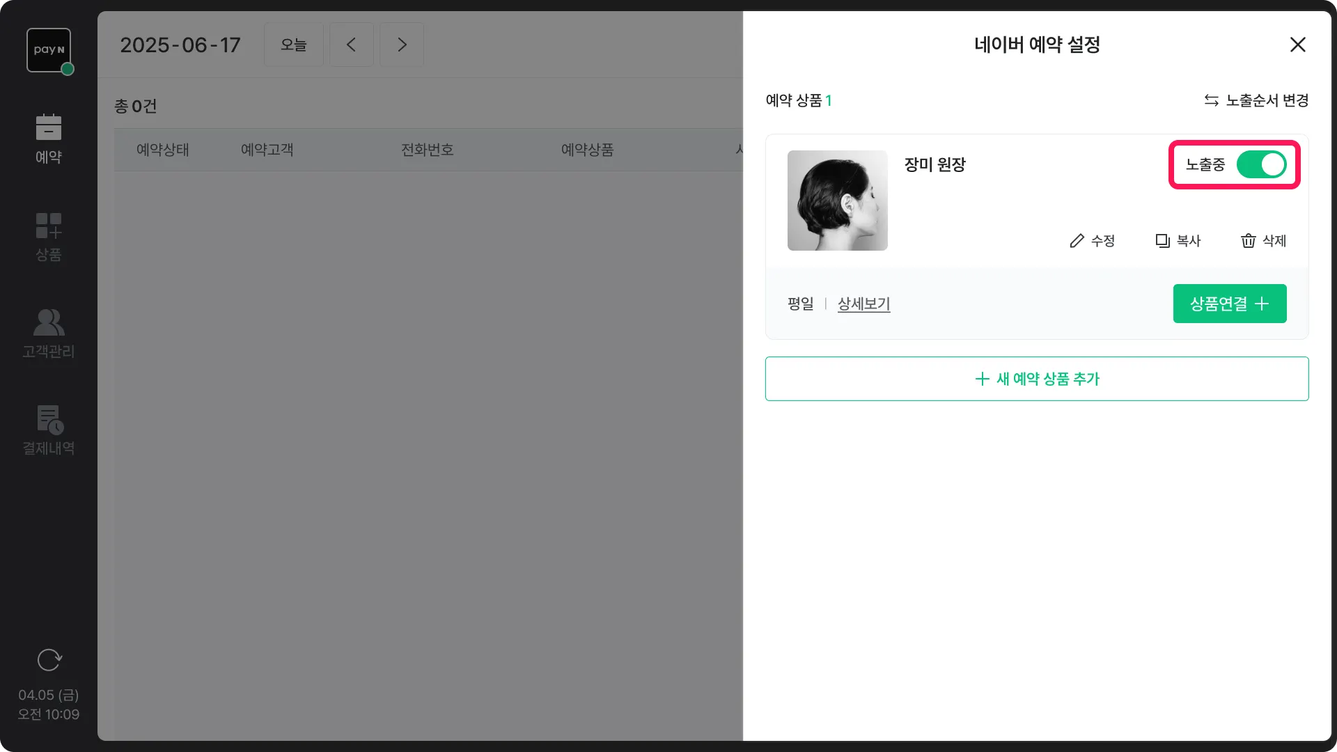 상품 연결을 완료한 후, 네이버 예약 노출을 활성화 해주세요.예약 상품 수정