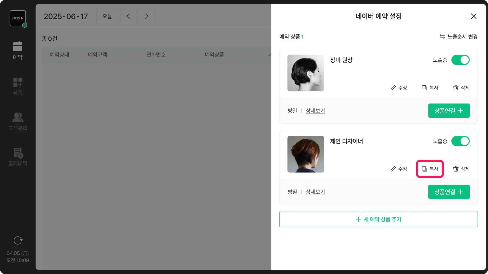 복사할 예약 상품의 [복사] 아이콘을 눌러주세요.